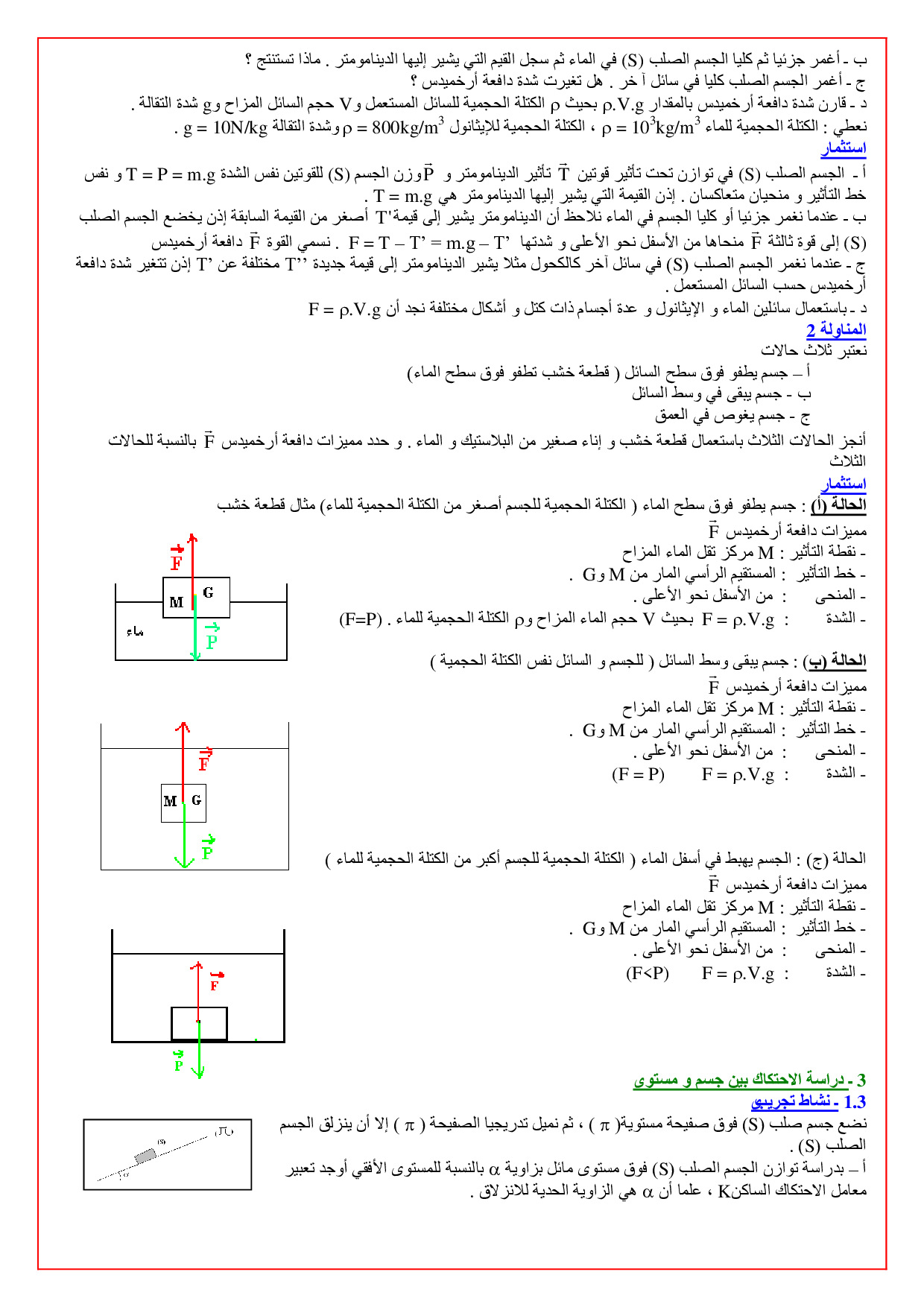 توازن جسم خاضع لقوتين (القوة المطبقة من طرف نابض - دافعة أرخميدس)