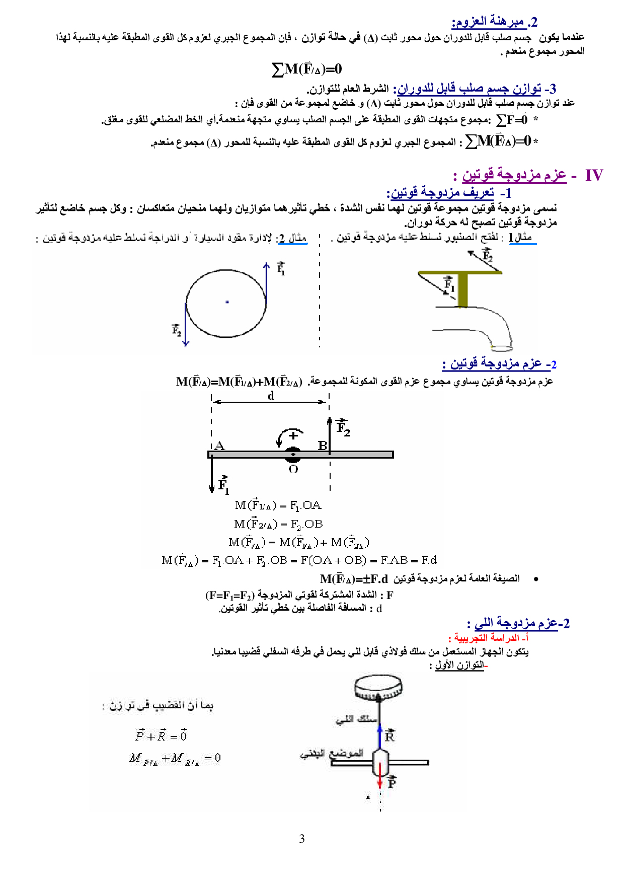 توازن جسم صلب قابل للدوران حول محور تابث - الدرس 4