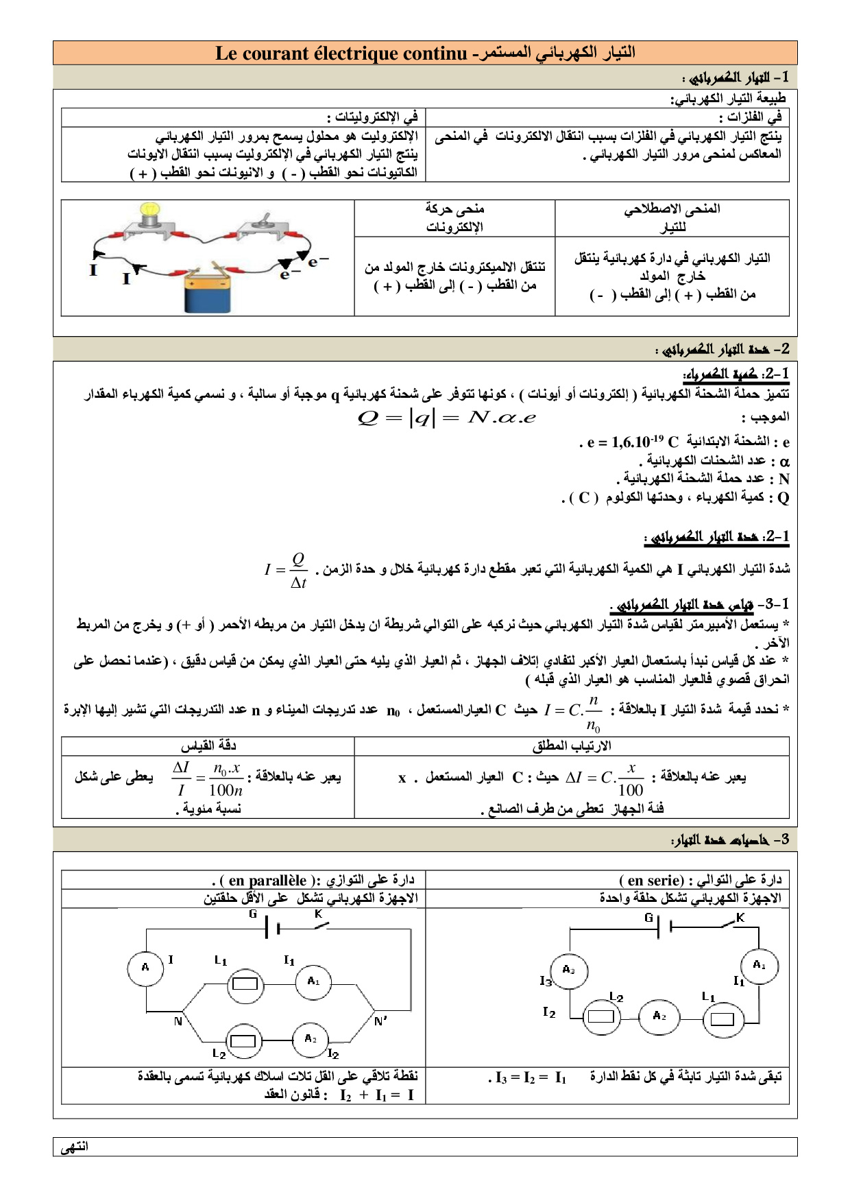 التيار الكهربائي المستمر - ملخص الدرس 2