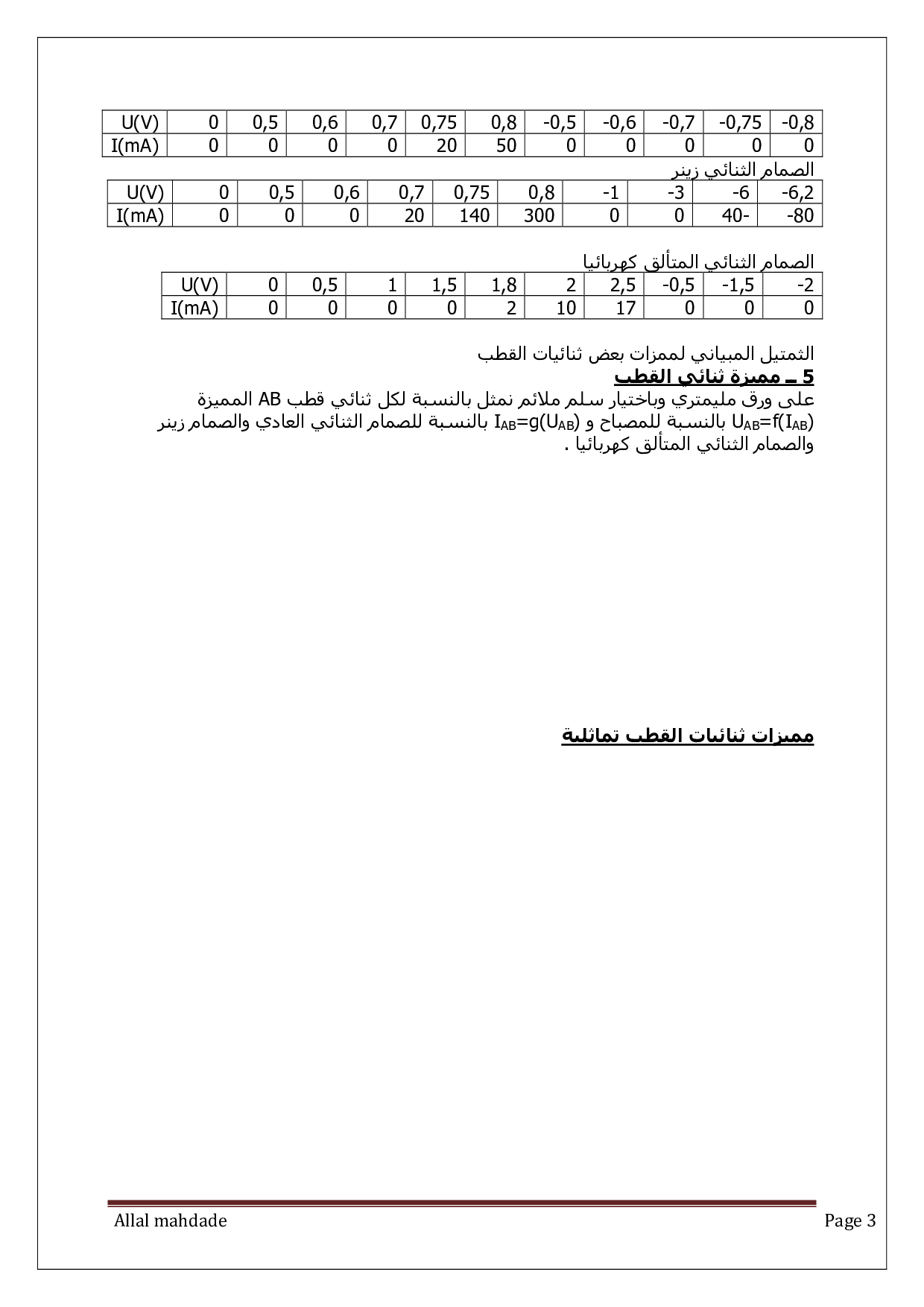مميزات بعض ثنائيات القطب غير النشيطة - الدرس 3