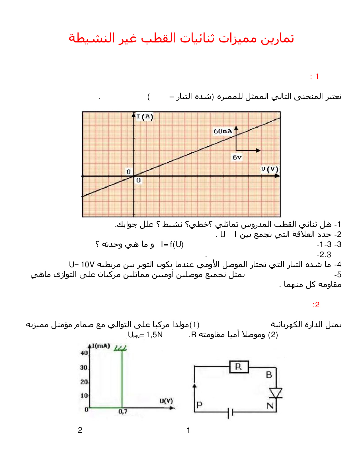 مميزات بعض ثنائيات القطب غير النشيطة - سلسلة التمارين 2