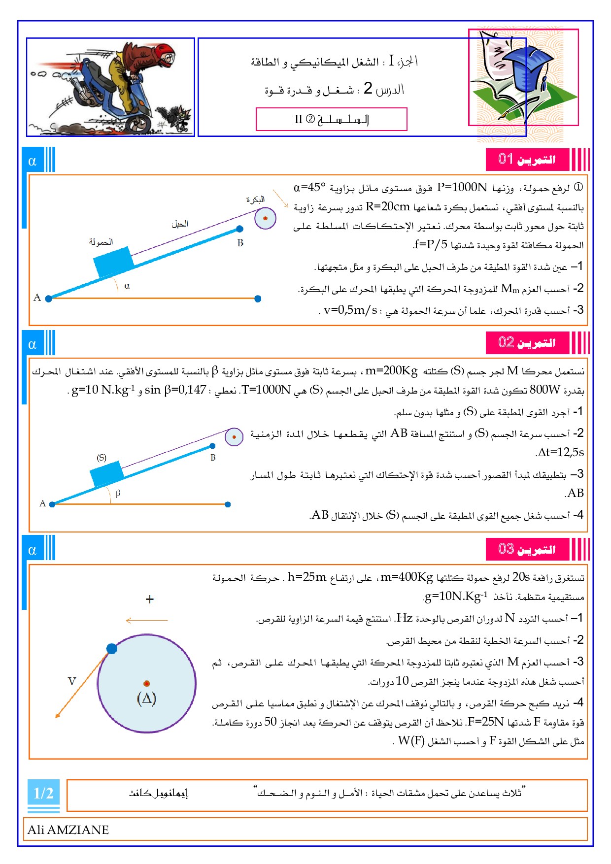 شغل وقدرة قوة - تمارين غير محلولة 5