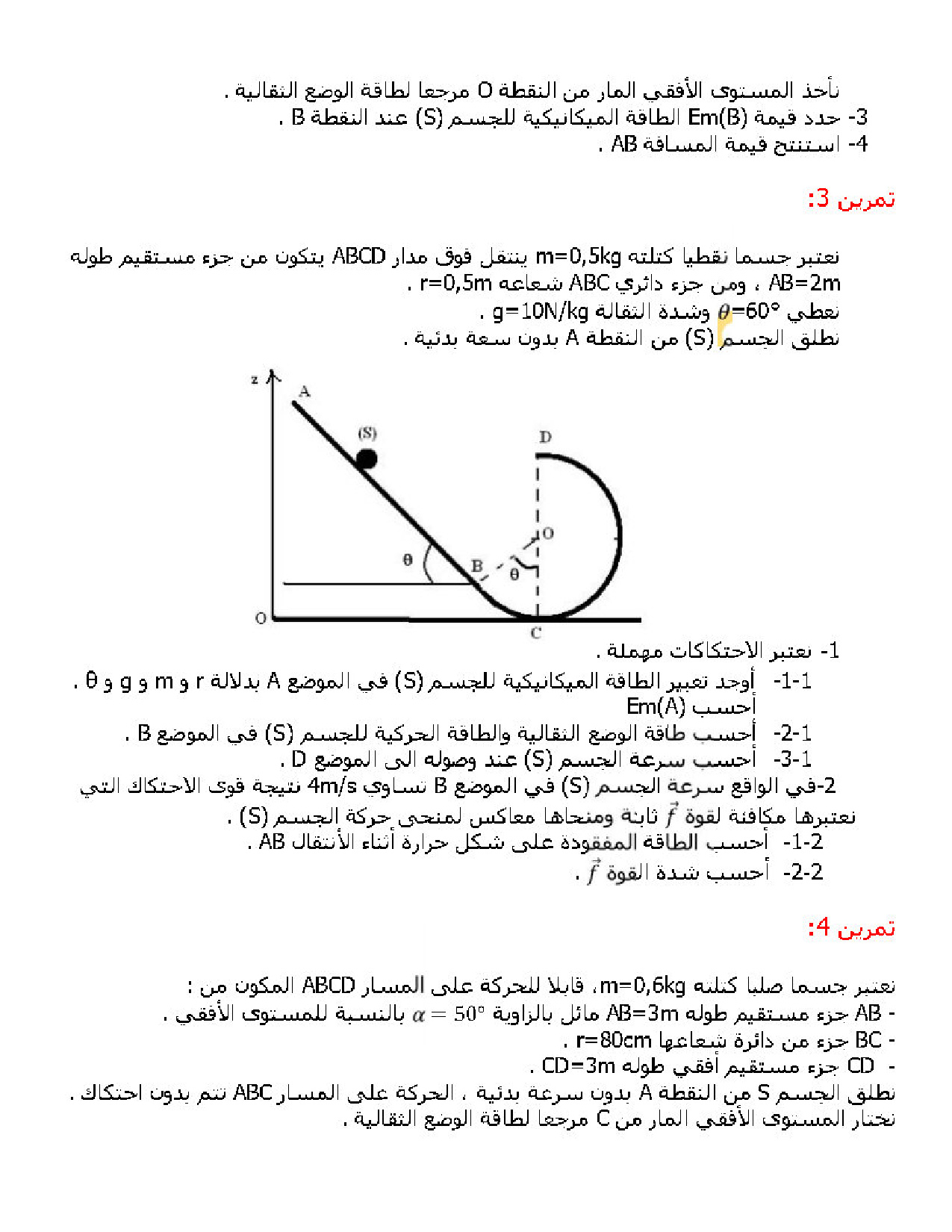 الشغل وطاقة الوضع الثقالية - الطاقة الميكانيكية - سلسلة التمارين 4
