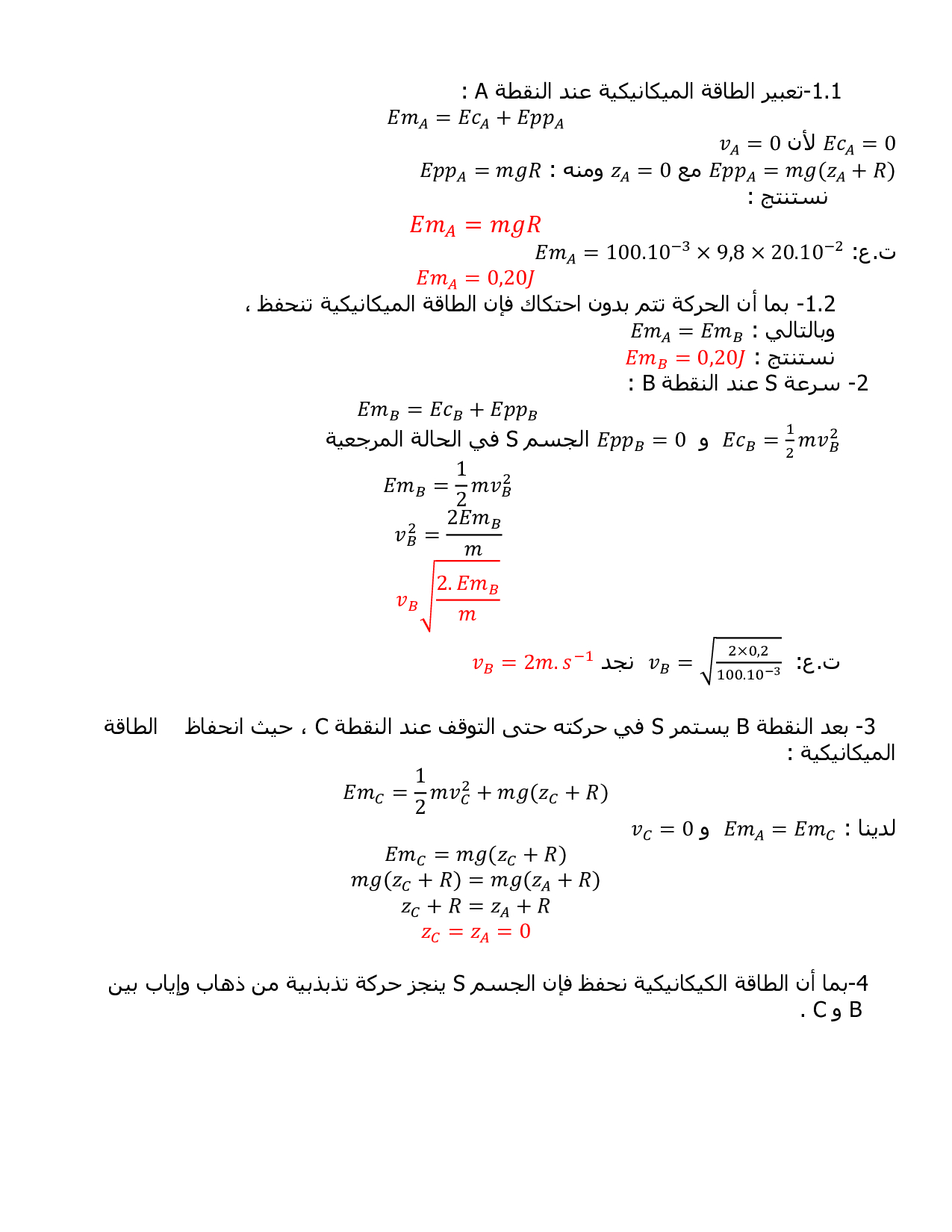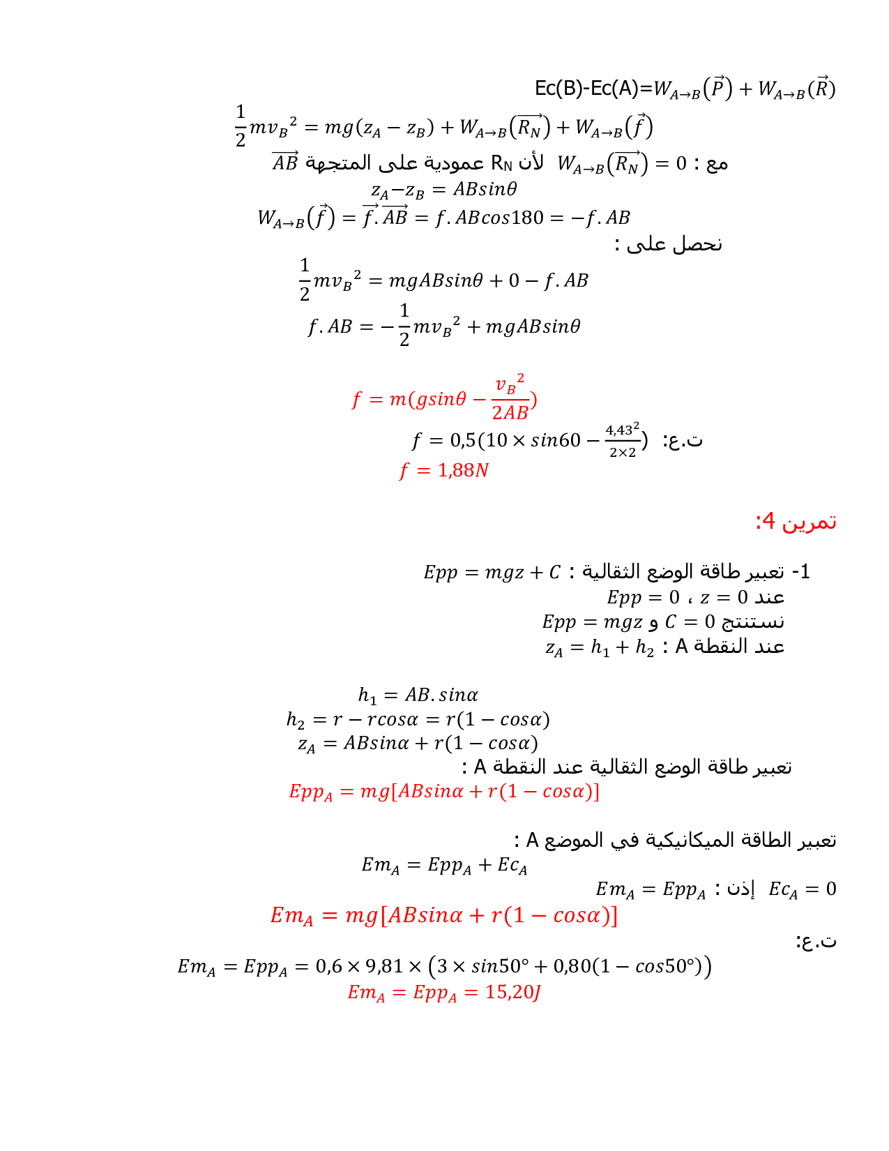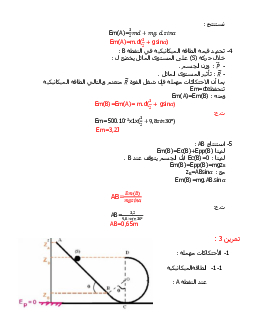 الشغل وطاقة الوضع الثقالية - الطاقة الميكانيكية - تصحيح سلسلة التمارين 4