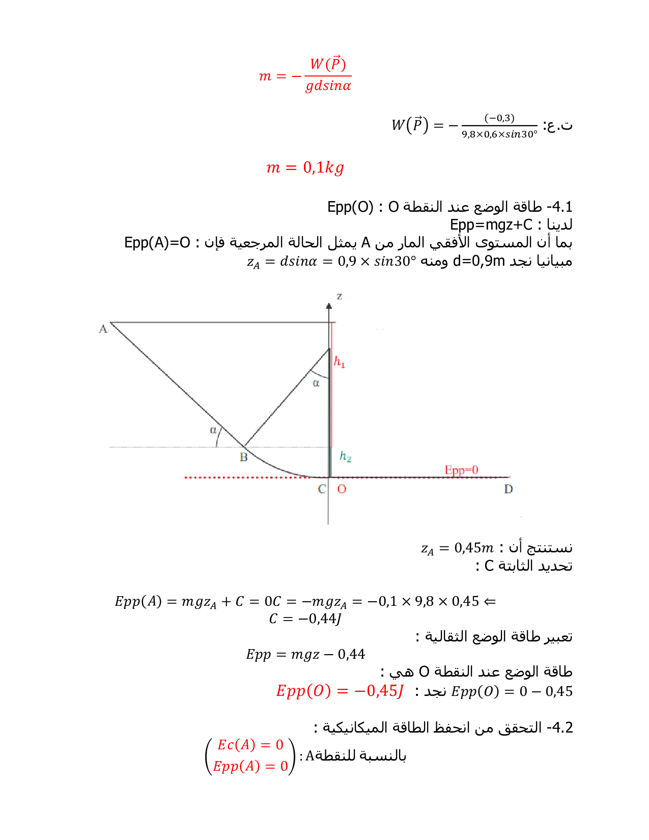 الشغل وطاقة الوضع الثقالية - الطاقة الميكانيكية - تصحيح سلسلة التمارين 4
