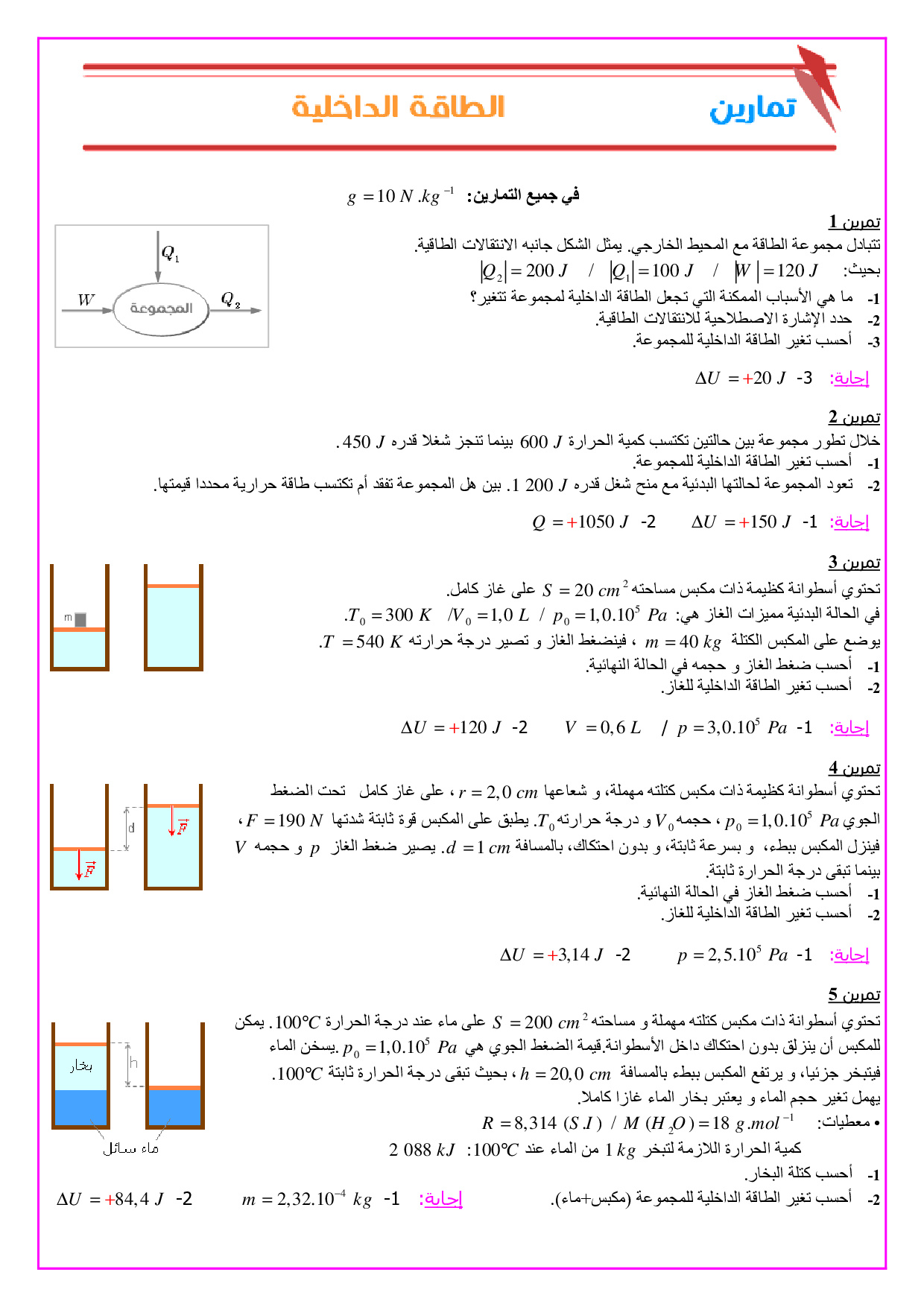 الشغل والطاقة الداخلية - تمارين محلولة 1