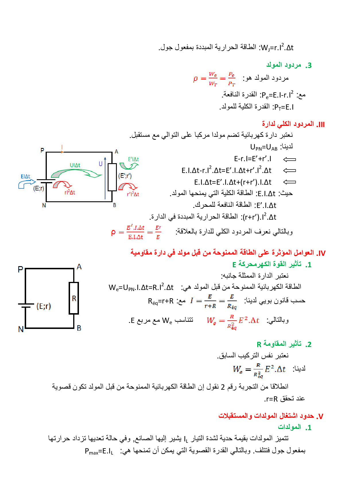 التصرف العام لدارة كهربائية - ملخص الدرس 3