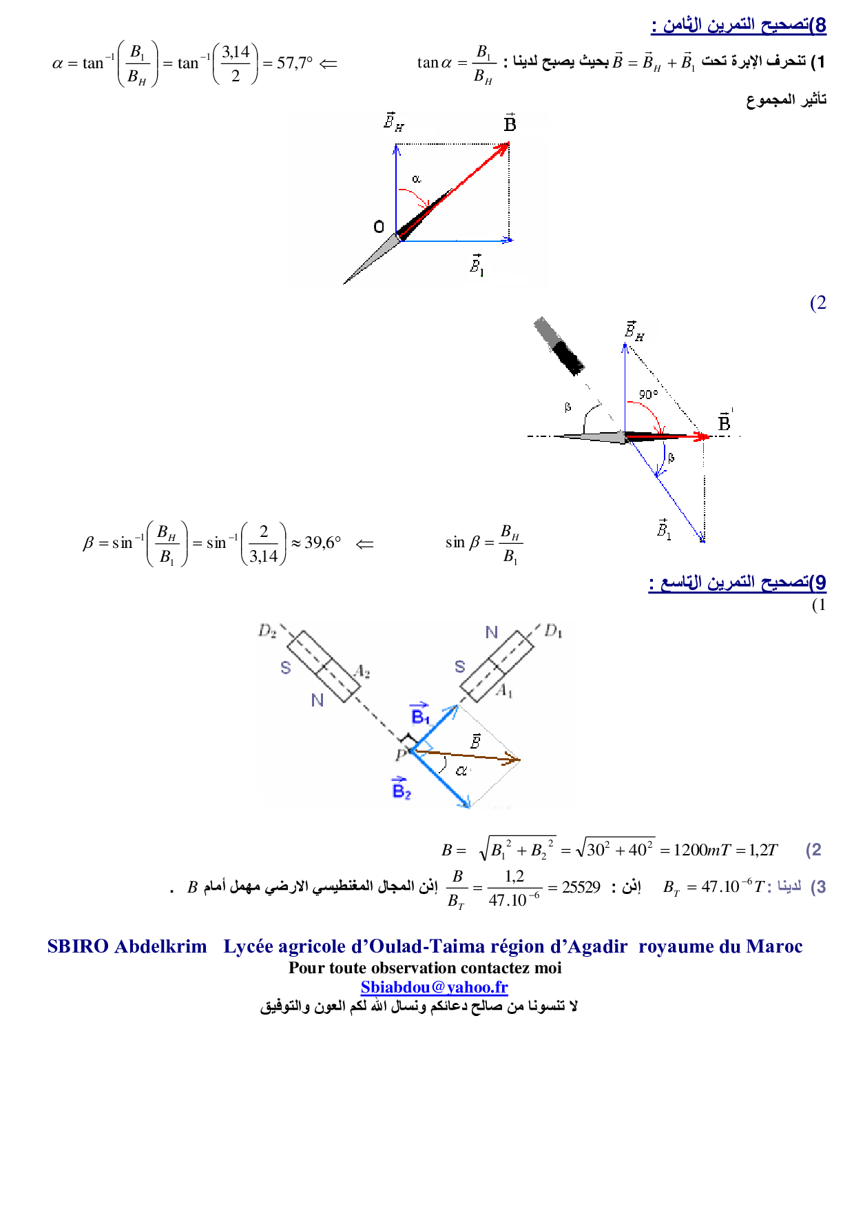المجال المغنطيسي - تمارين محلولة 1