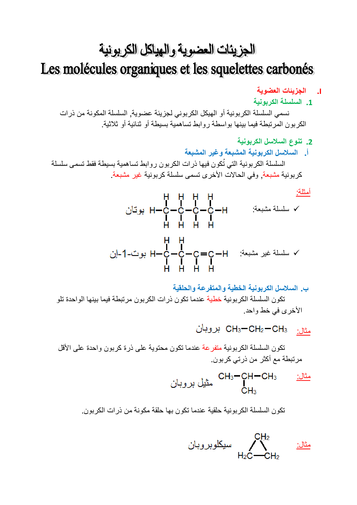 الجزيئات العضوية والهياكل الكربونية - الدرس 3