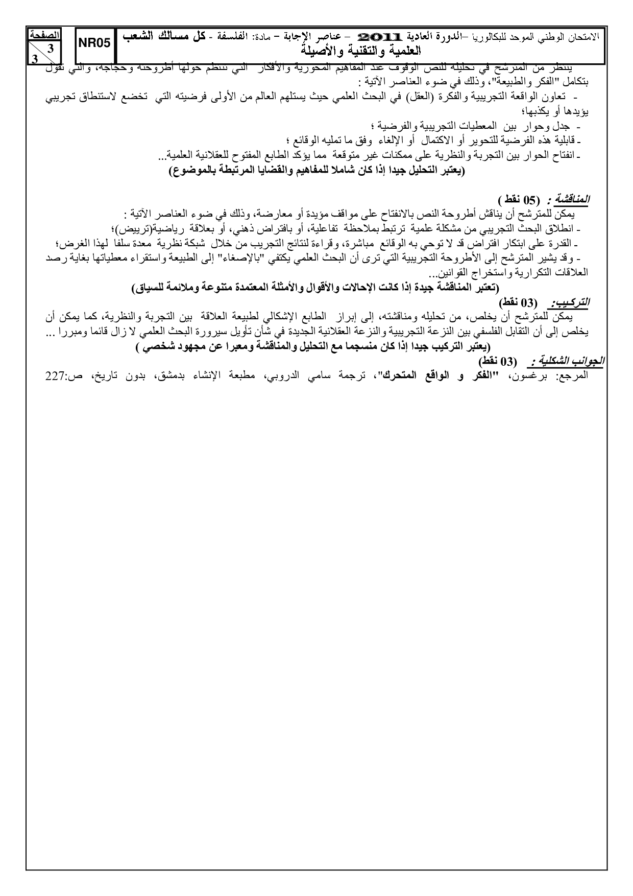 الفلسفة للشعب العلمية والتقنية 2011 الدورة العادية - التصحيح
