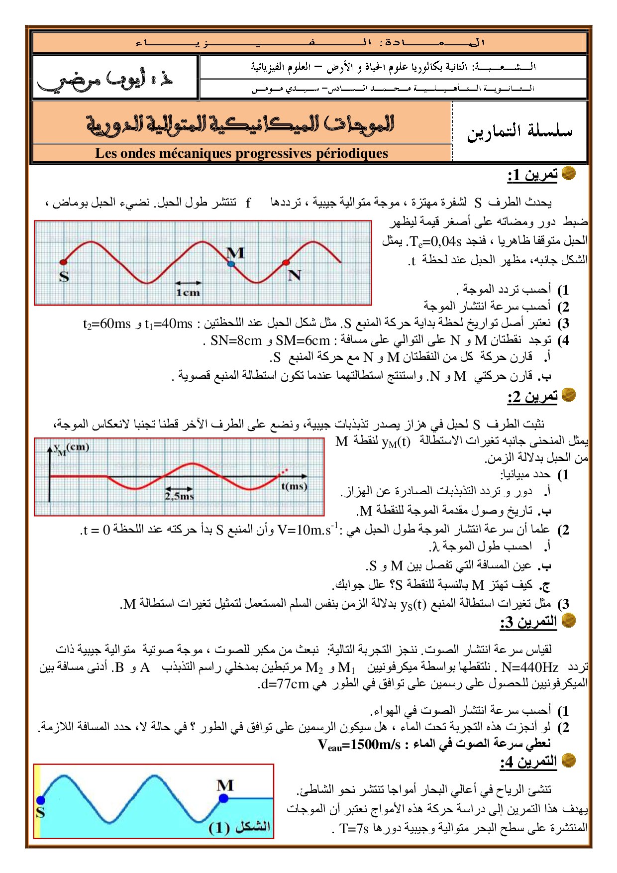 الموجات الميكانيكية المتوالية الدورية - تمارين غير محلولة 2