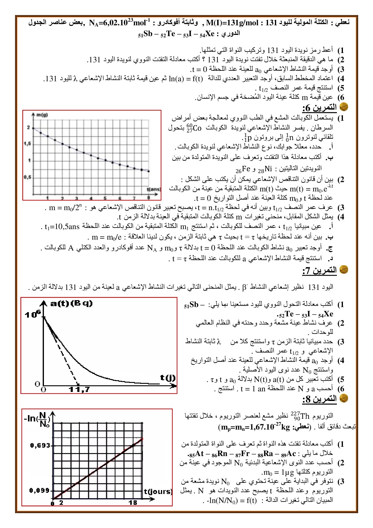 التناقص الإشعاعي - تمارين غير محلولة 2