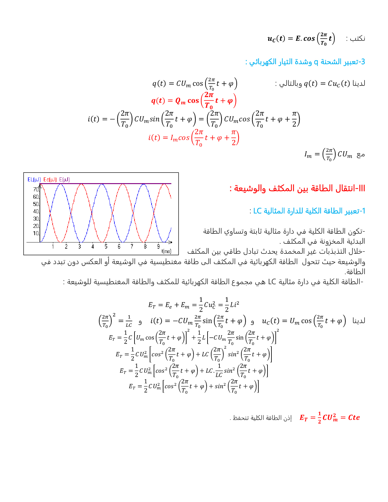 التذبذبات الحرة في دارة RLC متوالية - الدرس 3
