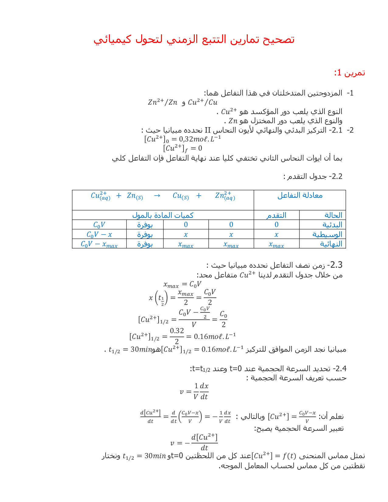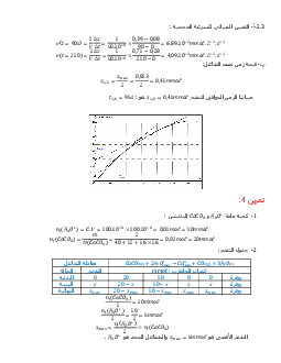 التتبع الزمني لتحول كيميائي - سرعة التفاعل - تصحيح سلسلة التمارين 3