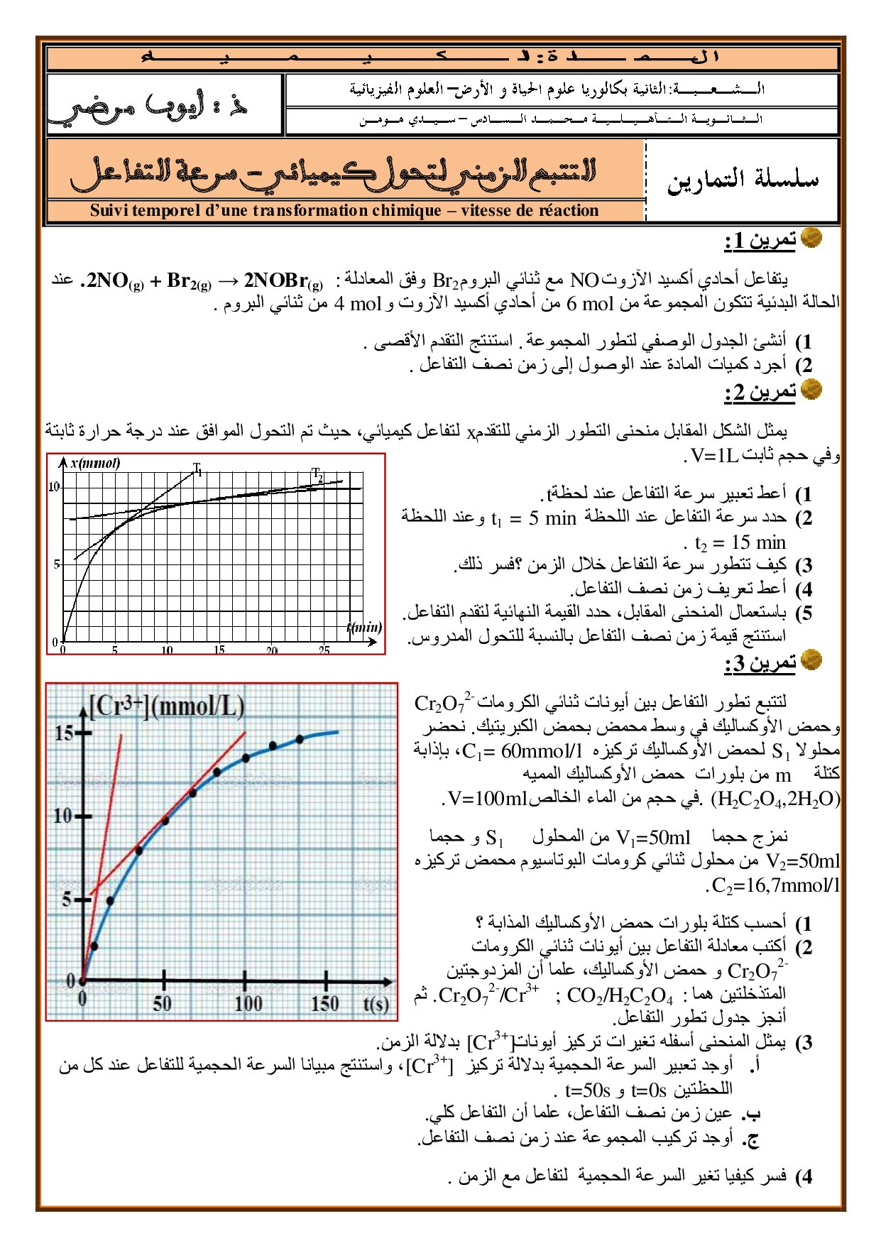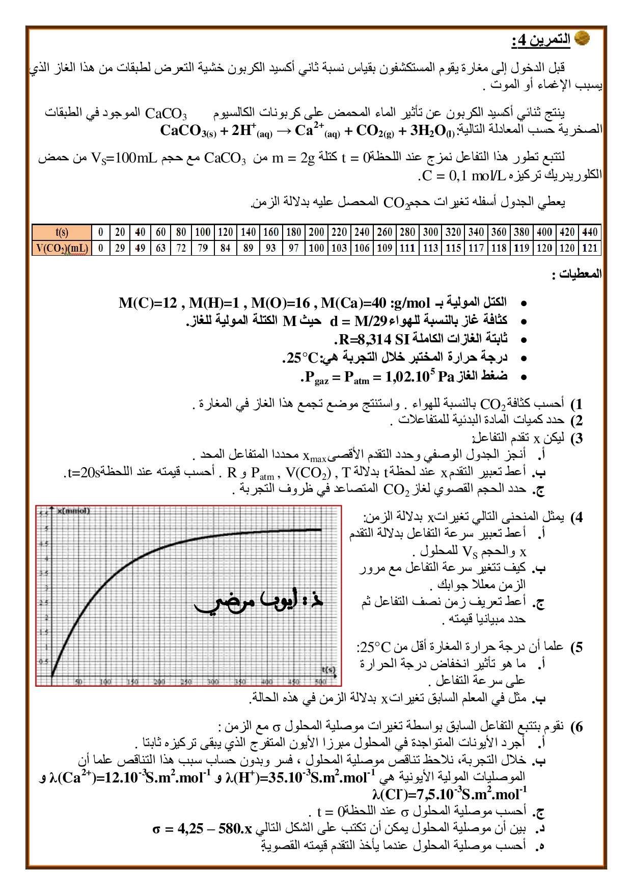 التتبع الزمني لتحول كيميائي - سرعة التفاعل - تمارين غير محلولة 2