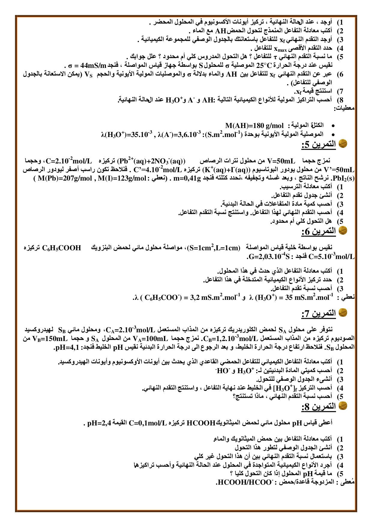 التحولات الكيميائية التي تحدث في منحيين - تمارين غير محلولة 2
