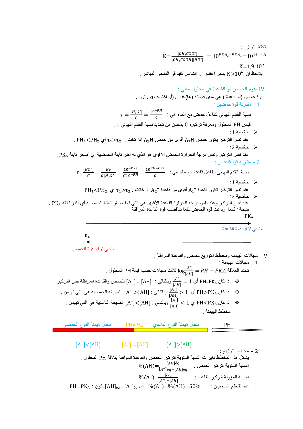 التحولات الكيميائية المقرونة بالتفاعلات حمض قاعدة - ملخص الدرس 2