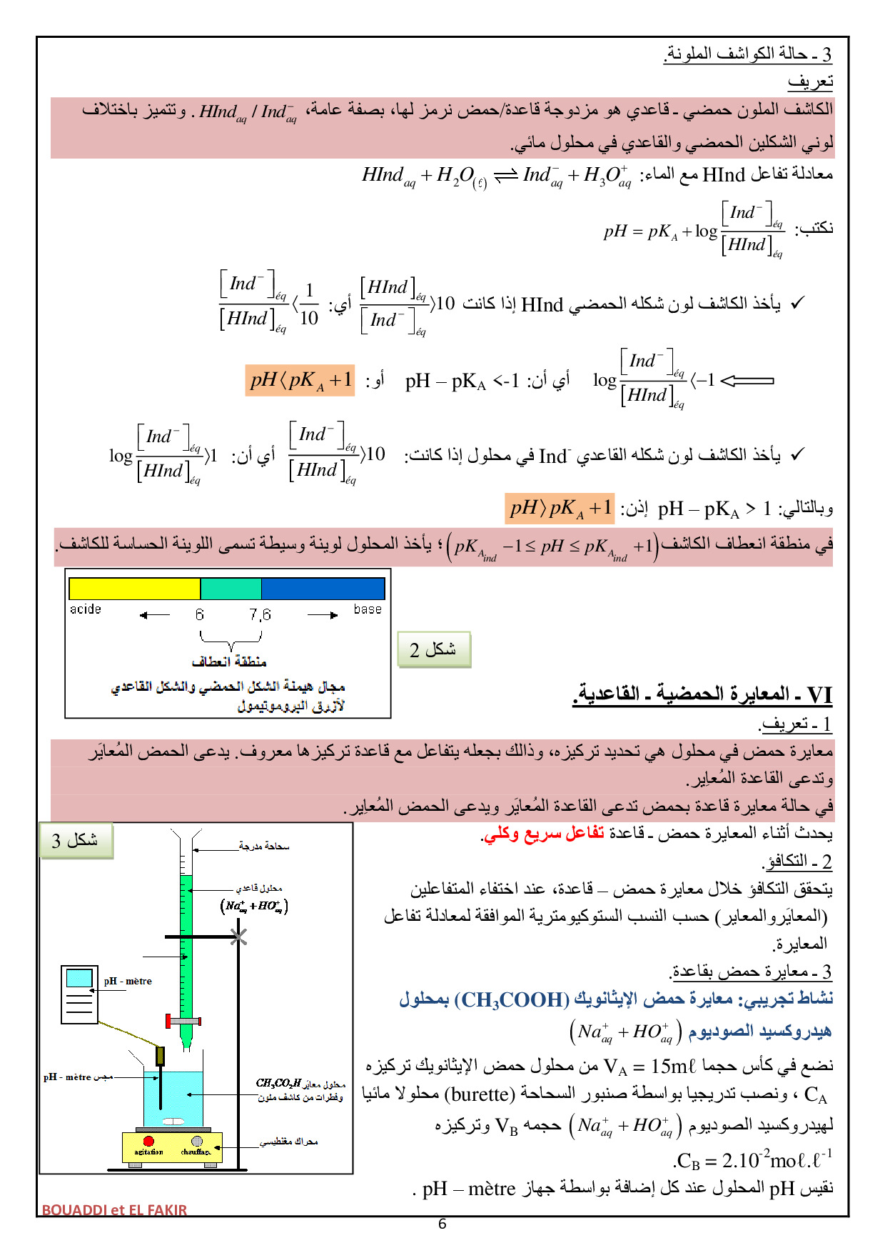 التحولات الكيميائية المقرونة بالتفاعلات حمض قاعدة - الدرس 6
