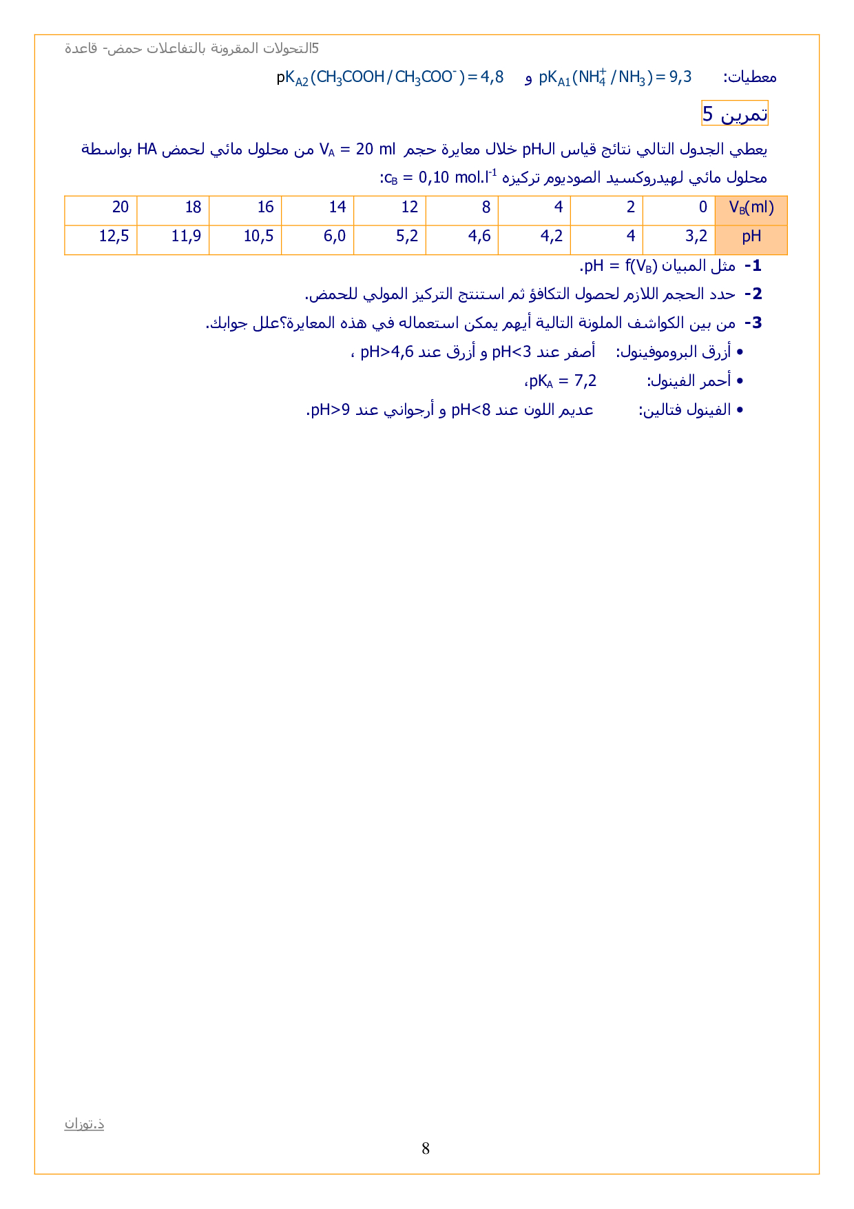 التحولات الكيميائية المقرونة بالتفاعلات حمض قاعدة - تمارين غير محلولة 5