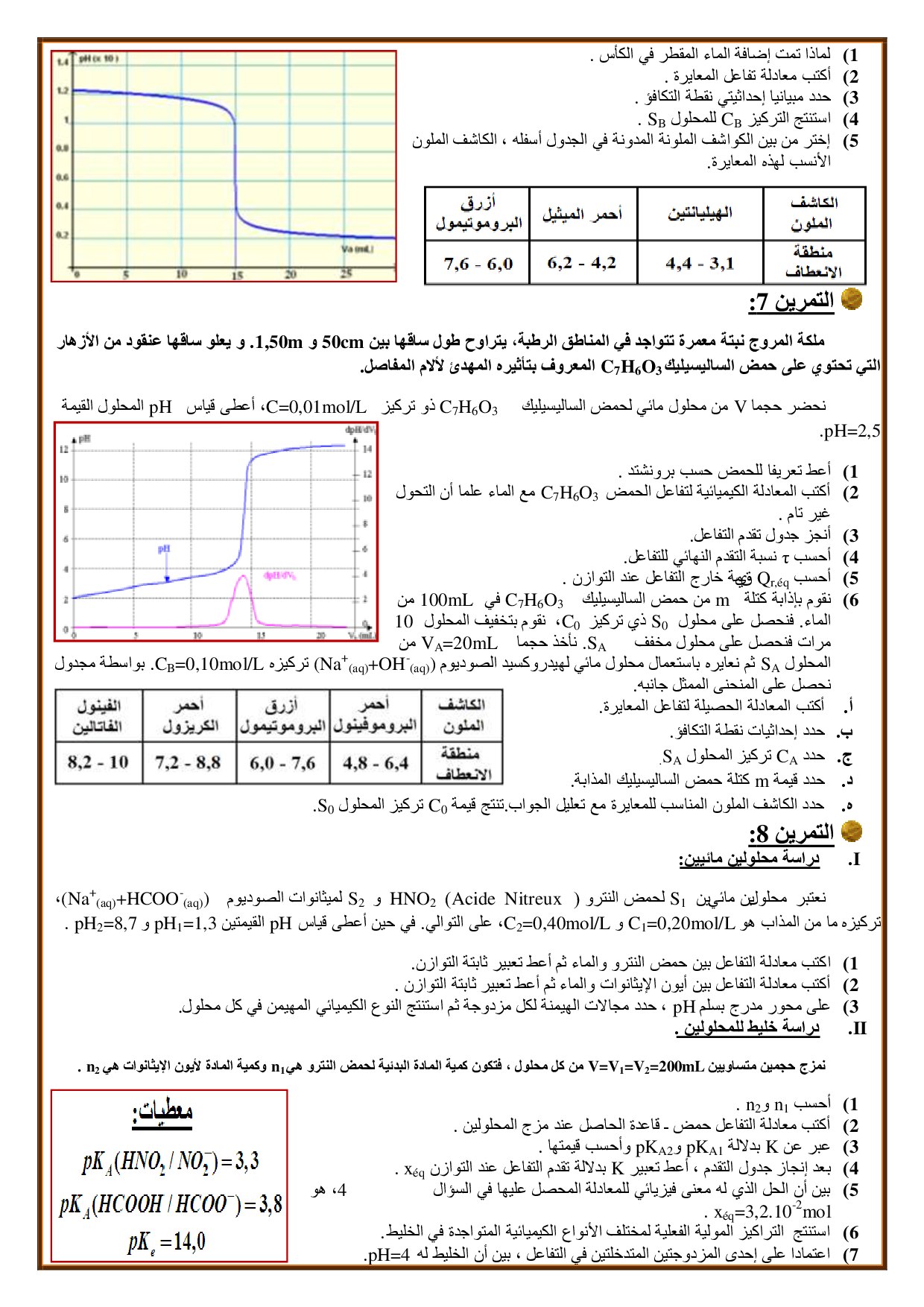 التحولات الكيميائية المقرونة بالتفاعلات حمض قاعدة - تمارين غير محلولة 2