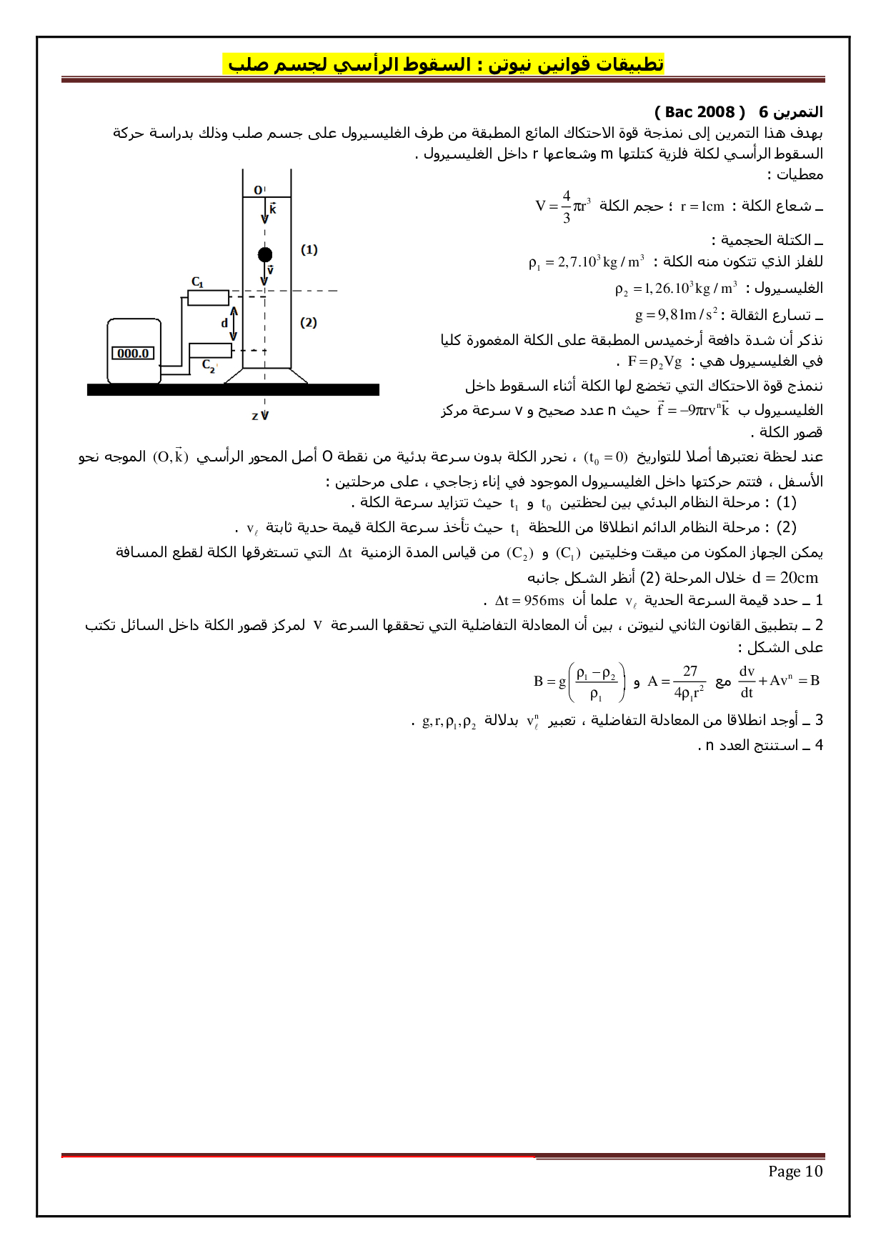 تطبيقات قوانين نيوتن: السقوط الرأسي لجسم صلب
