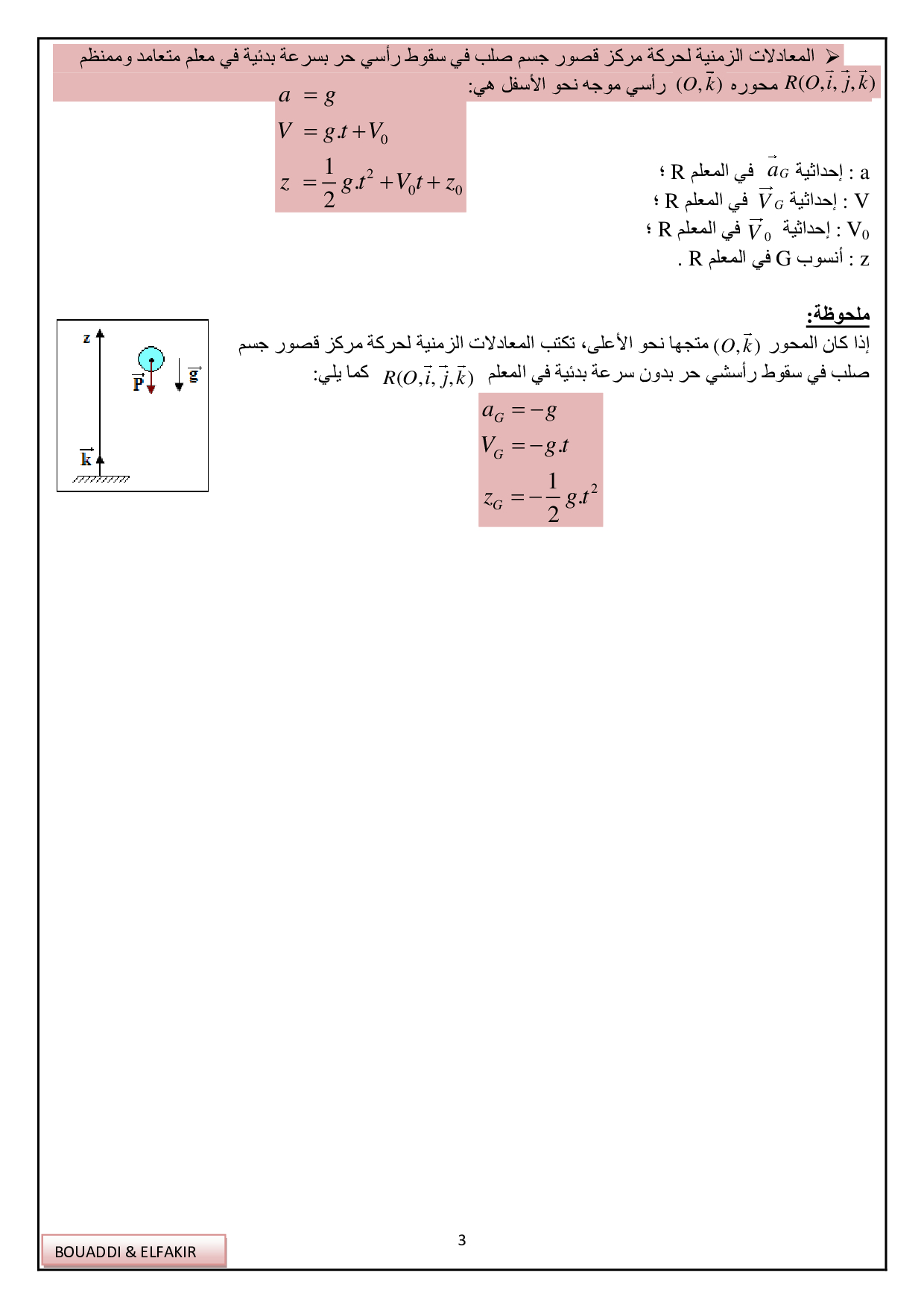السقوط الرأسي لجسم صلب - ملخص الدرس 2
