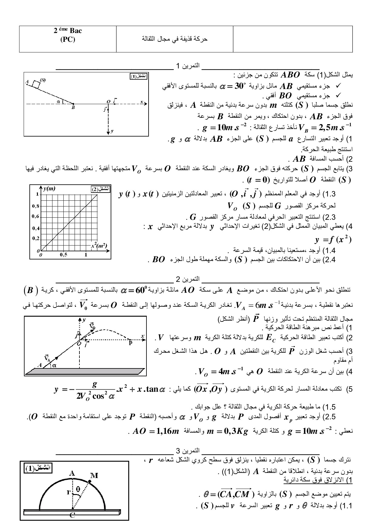 حركة قذيفة في مجال الثقالة المنتظم - تمارين غير محلولة 1