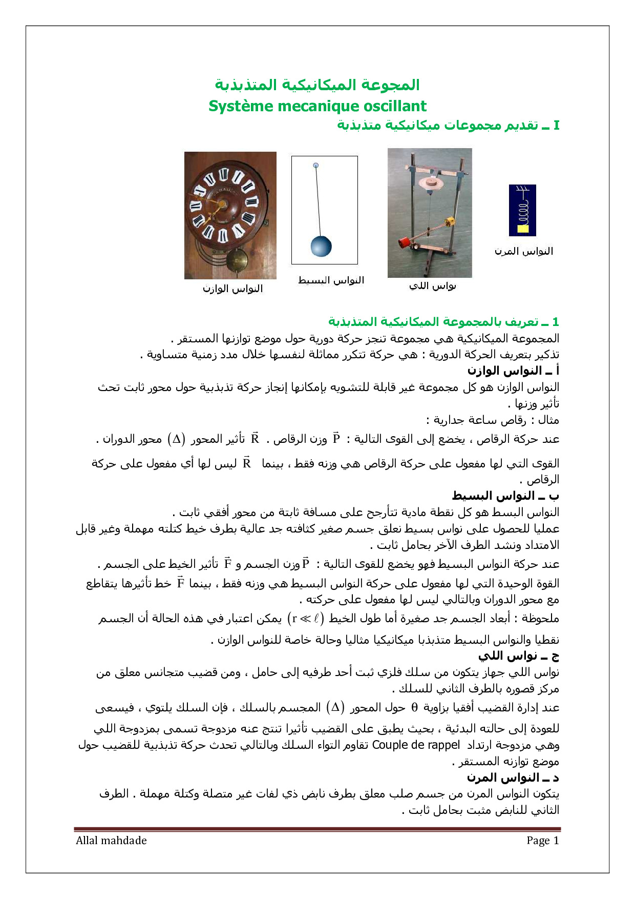 المجموعات الميكانيكية المتذبذبة - الدرس 4