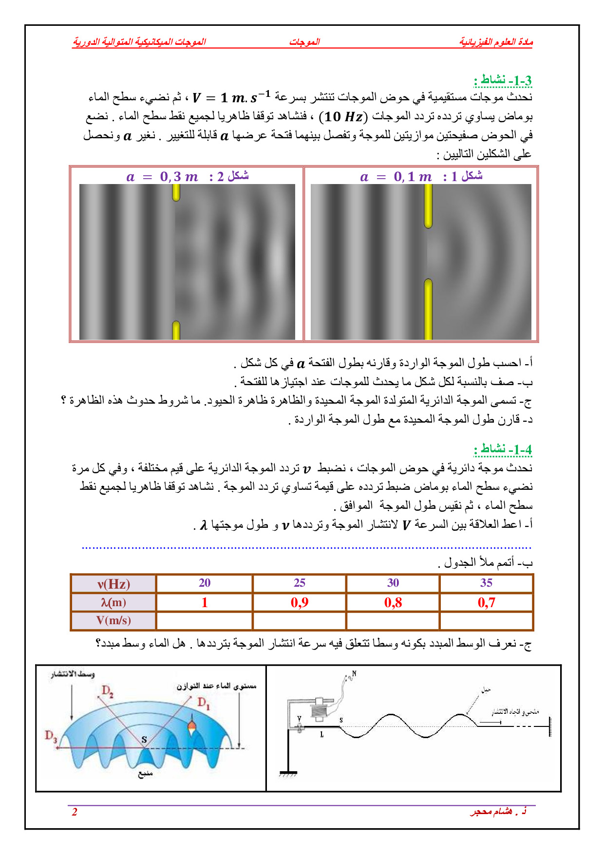 الموجات الميكانيكية المتوالية الدورية - أنشطة 2