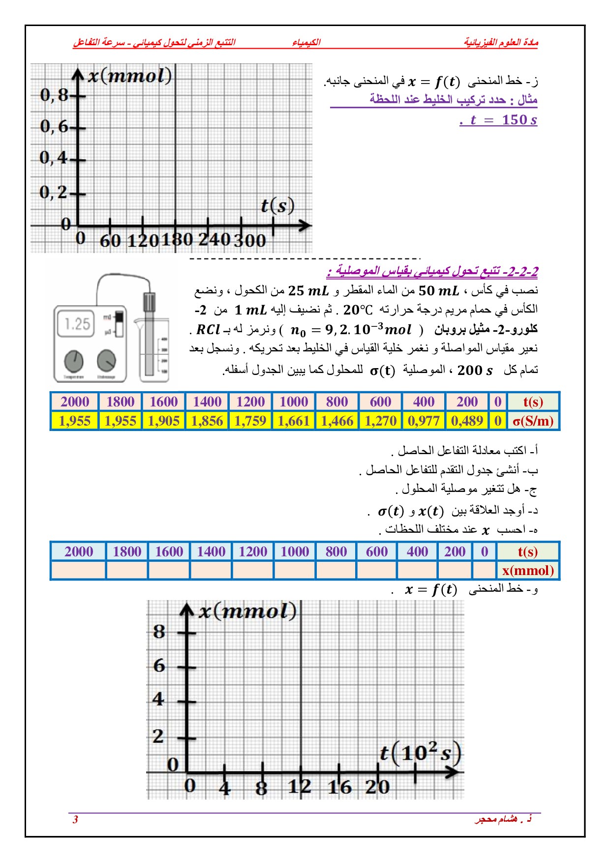 التتبع الزمني لتحول كيميائي - سرعة التفاعل - أنشطة 2