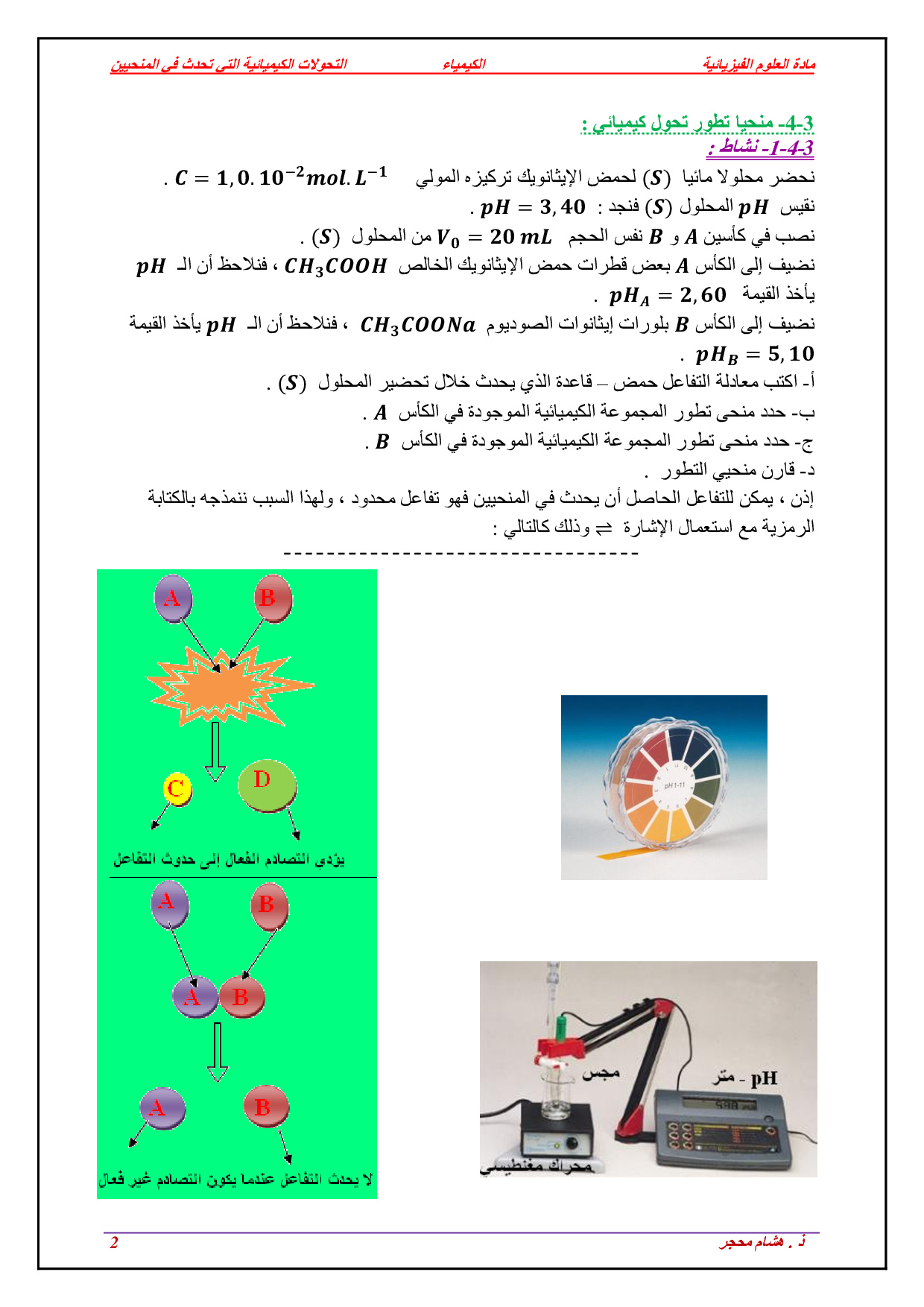 التحولات الكيميائية التي تحدث في منحيين - أنشطة 1