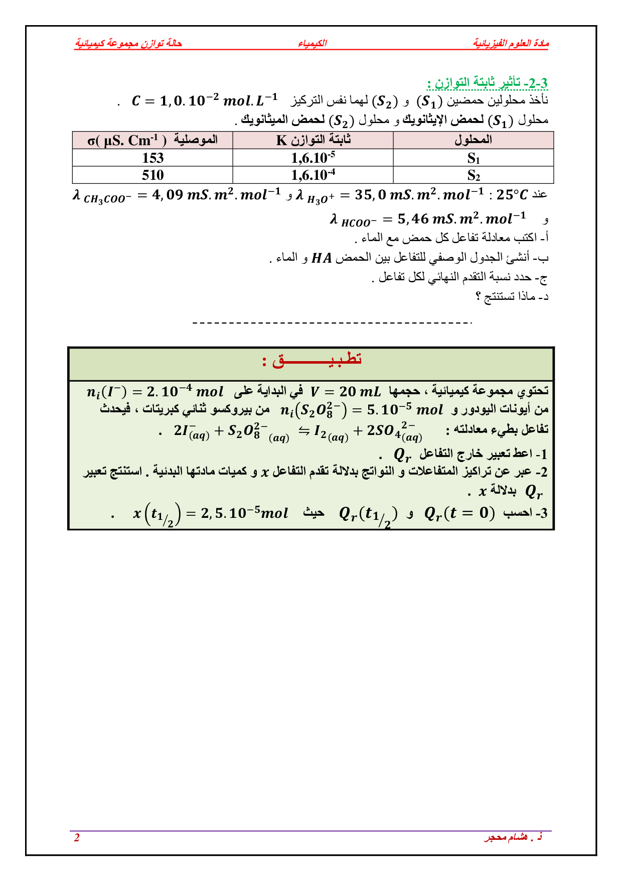 حالة توازن مجموعة كيميـائية - أنشطة 2