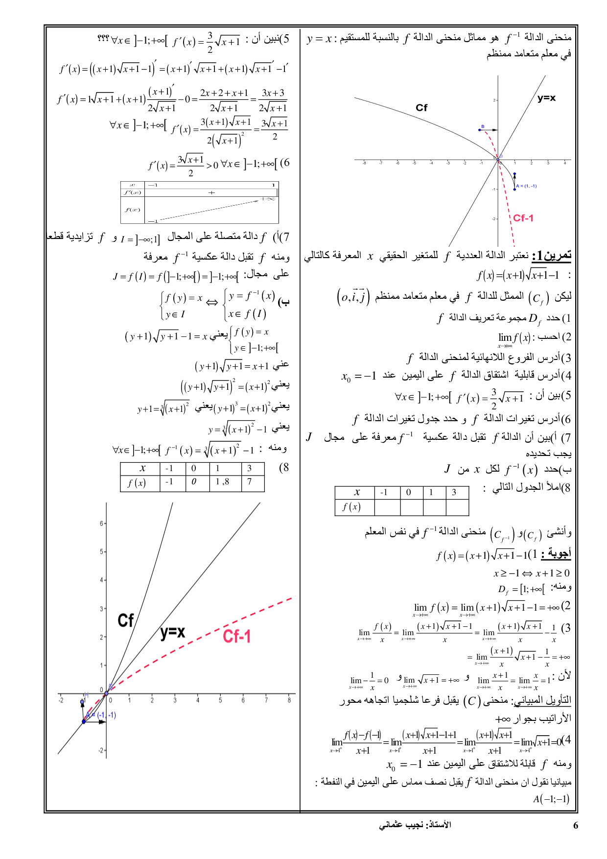 دراسة الدوال وتمثيلها المبياني - تمارين محلولة 1
