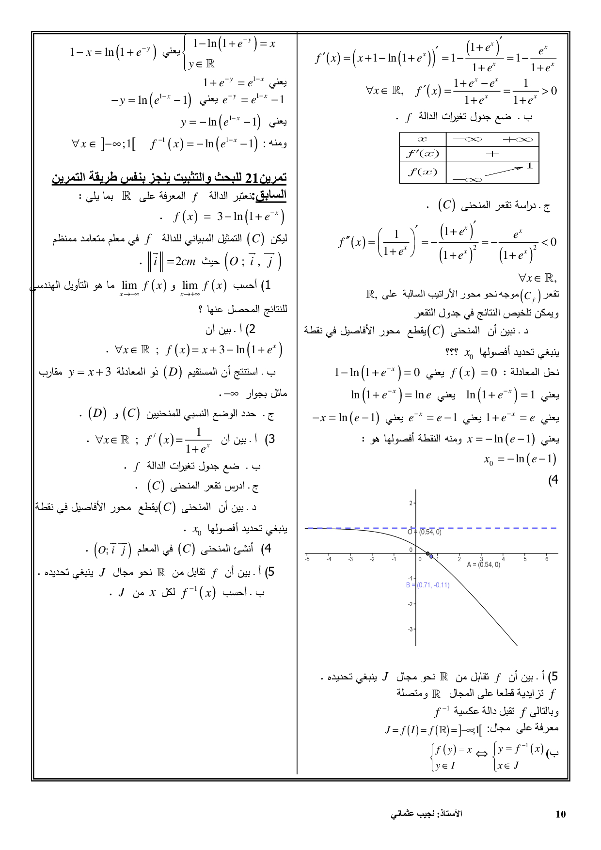 الدوال الأسية - تمارين محلولة 1