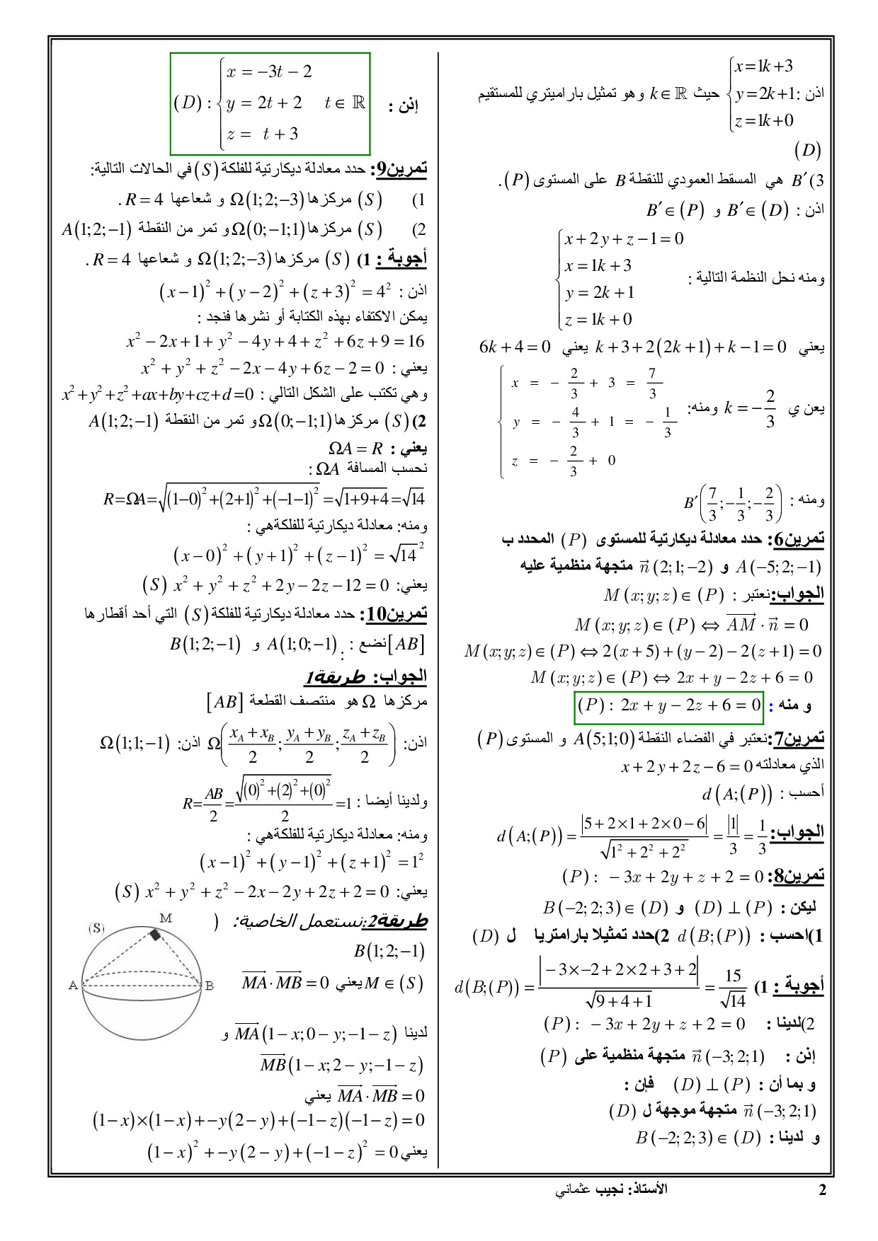 الهندسة الفضائية (الجداء السلمي في الفضاء - الفلكة - الجداء المتجهي)
