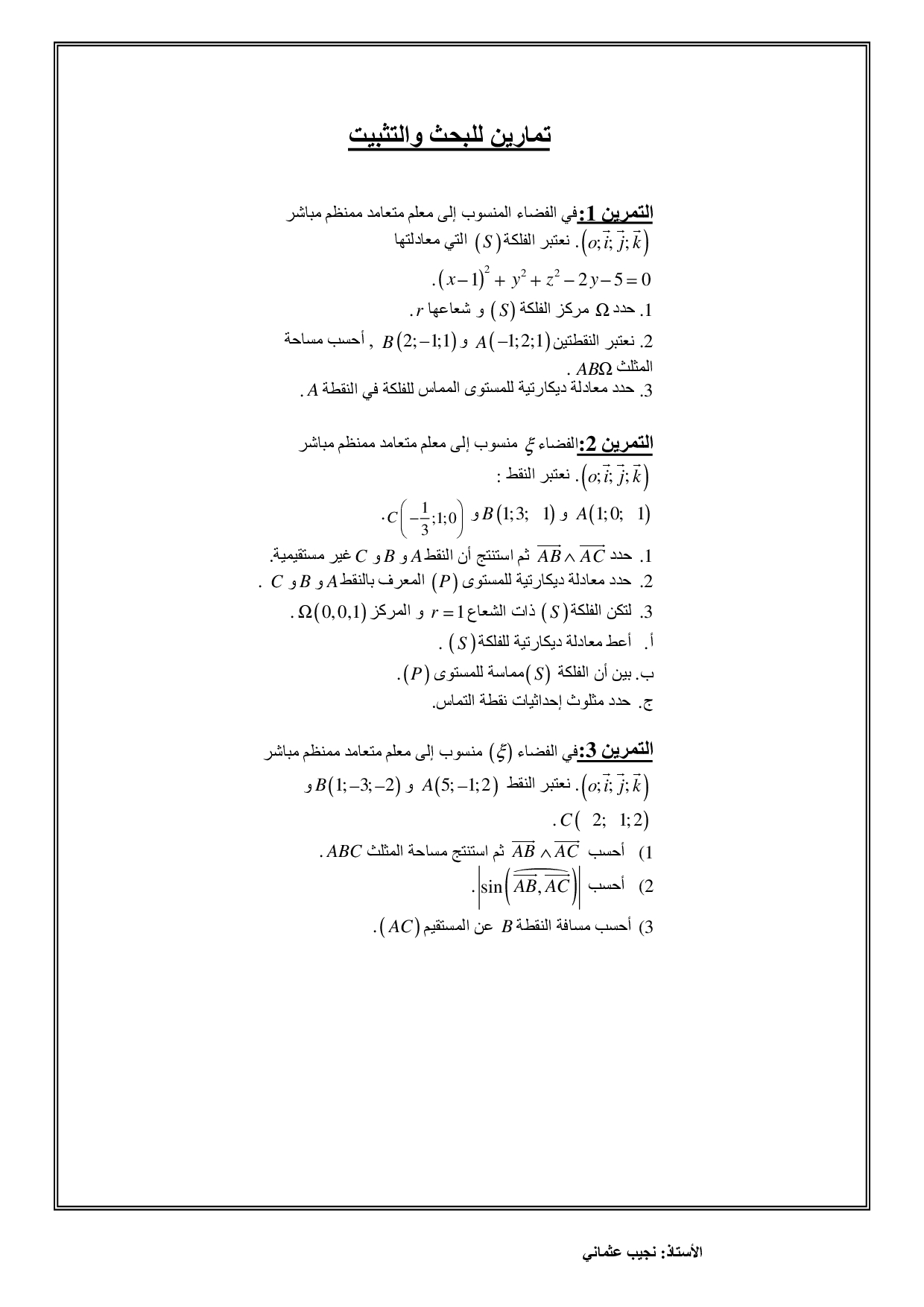 الهندسة الفضائية (الجداء السلمي في الفضاء - الفلكة - الجداء المتجهي)