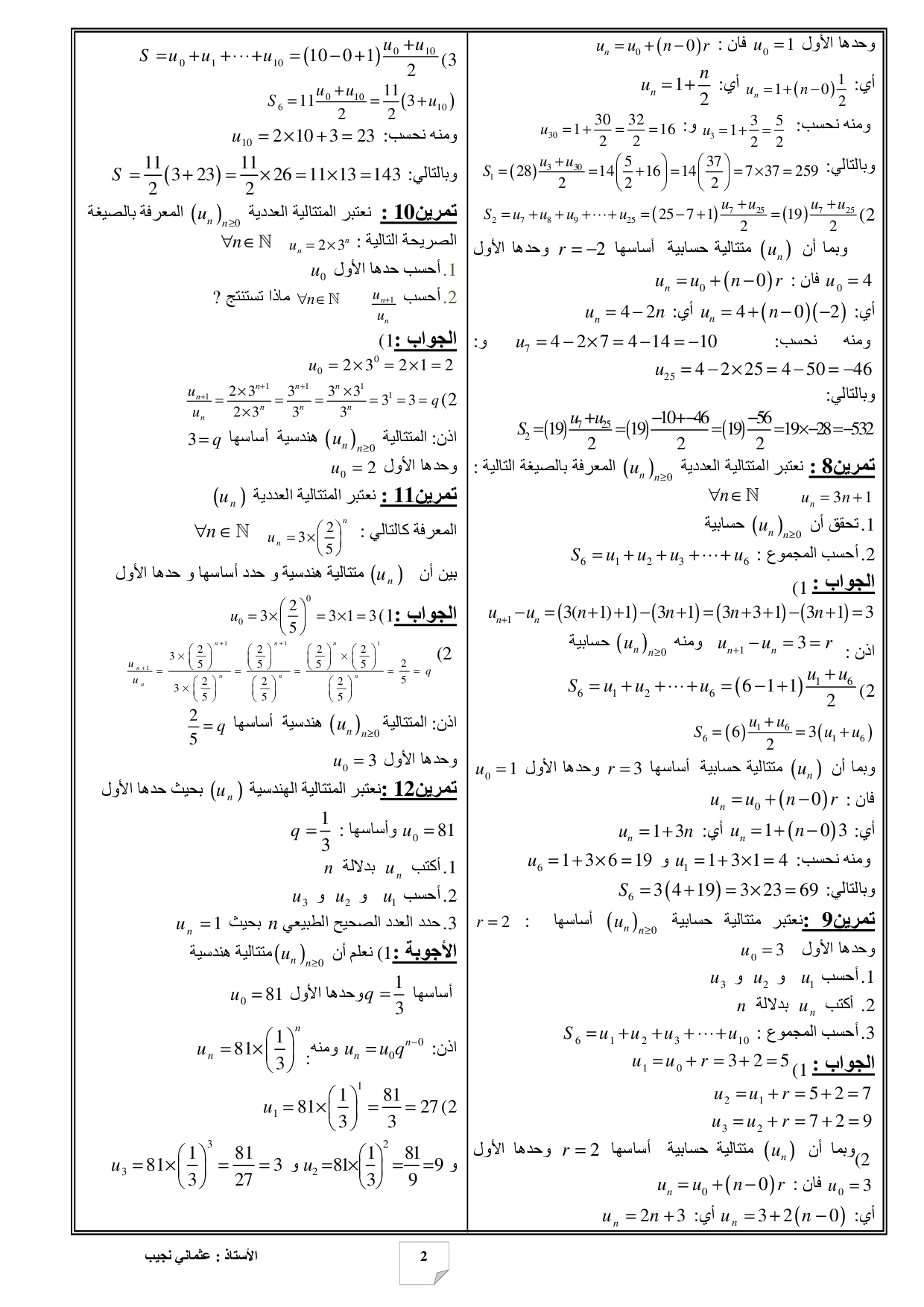 المتتاليات العددية - تمارين محلولة 1