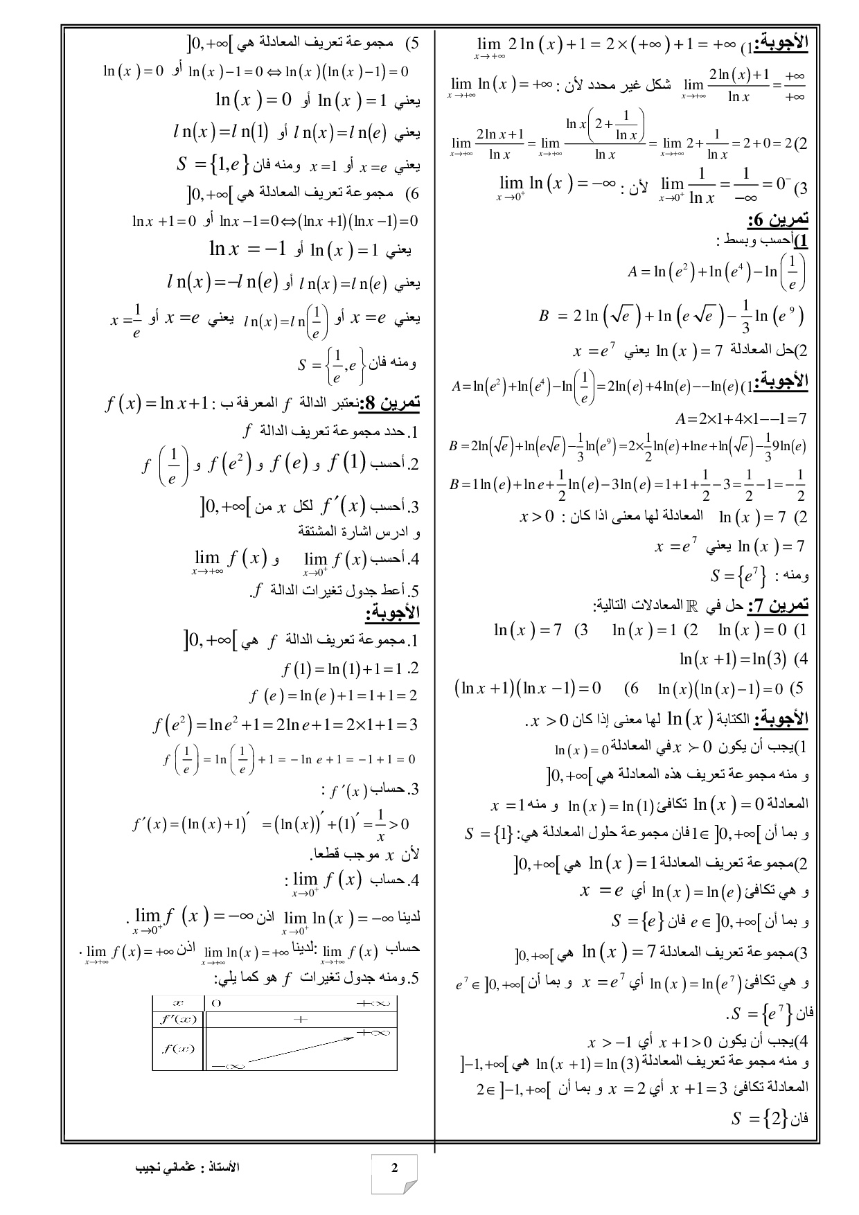 الدوال اللوغاريتمية - تمارين محلولة 1