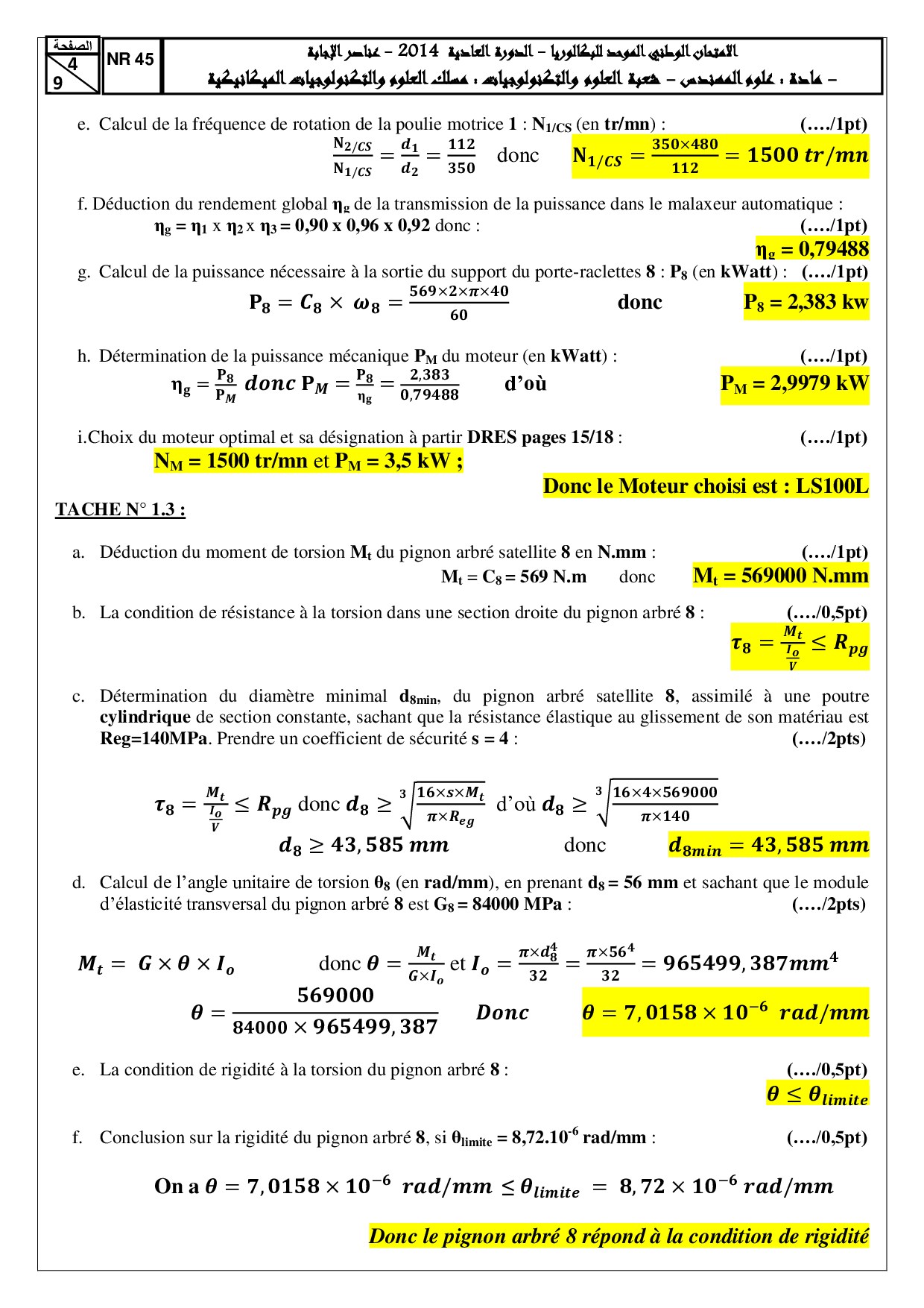 Examen SI 2 Bac STM 2014 Session Normale - Corrigé