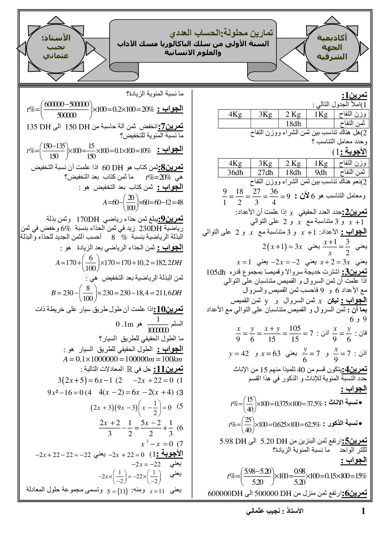 الحساب العددي والتناسبية - تمارين محلولة 1