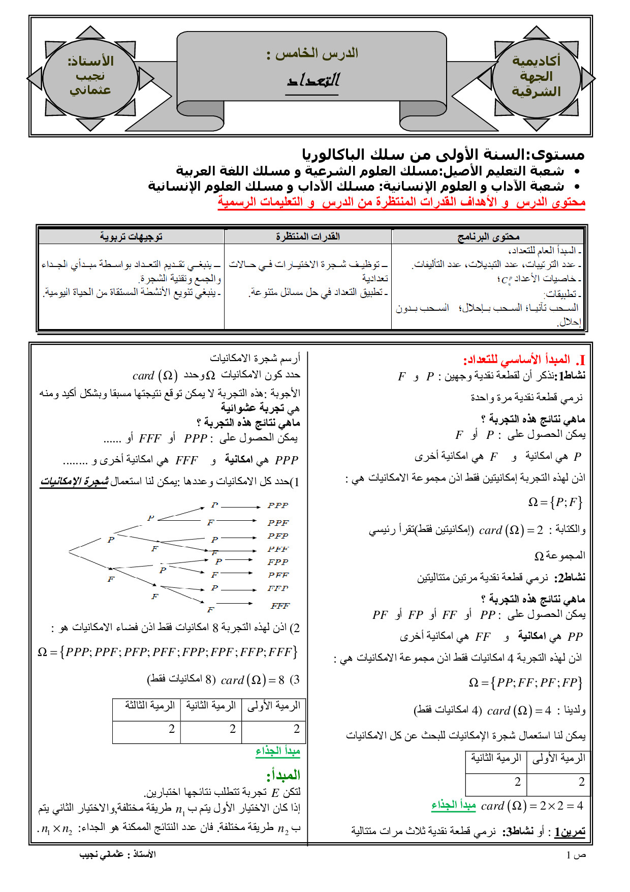 الرياضيات: الأولى باك آداب وعلوم إنسانية