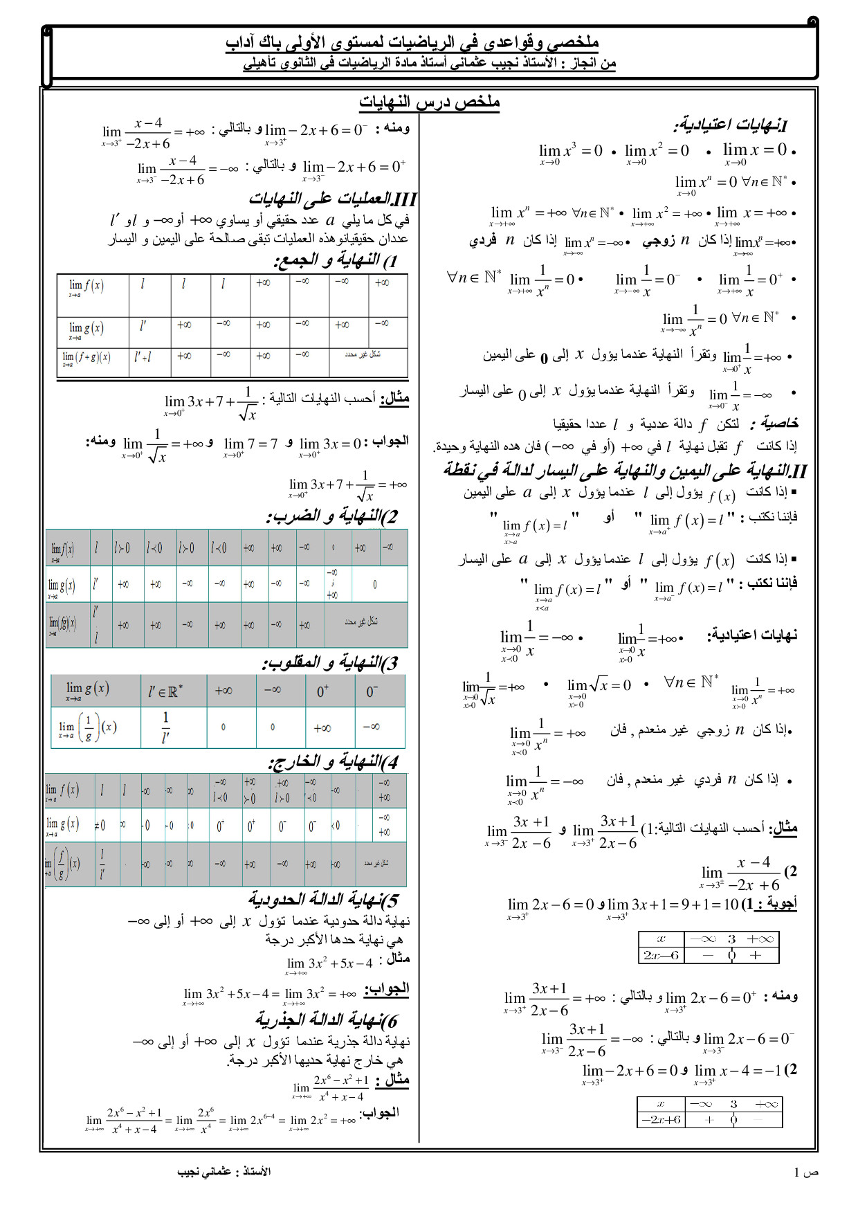 نهاية دالة عددية - ملخص الدرس 1