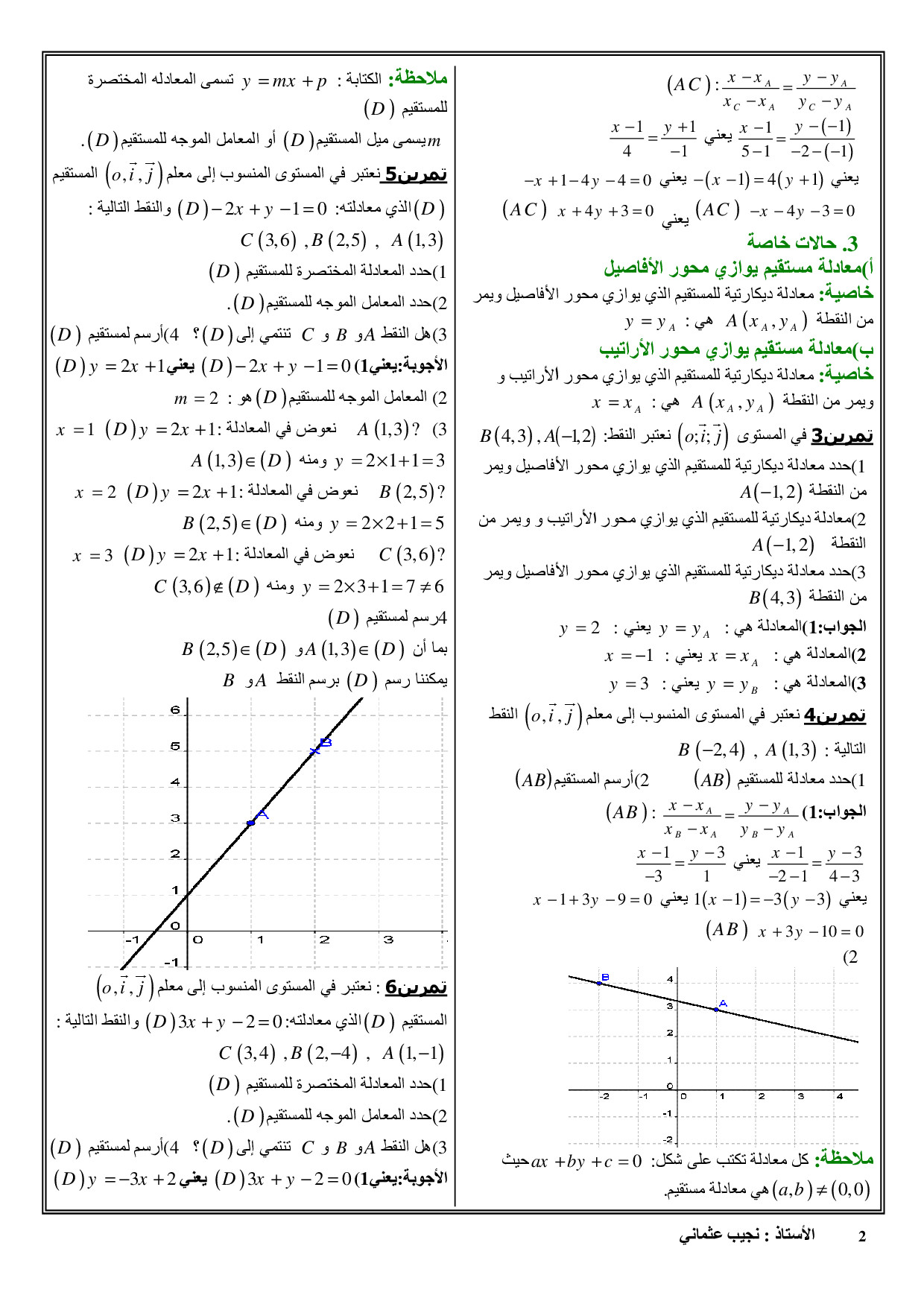 المستقيم في المستوى - الدرس 1