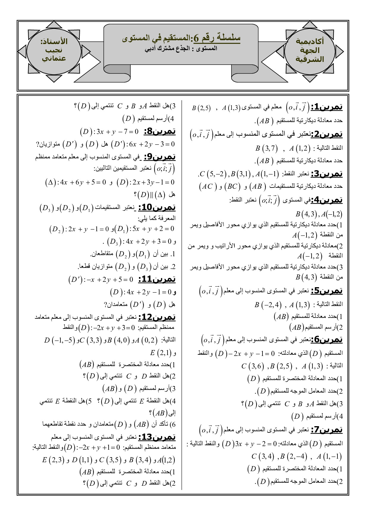 الرياضيات: الجذع المشترك آداب وعلوم إنسانية
