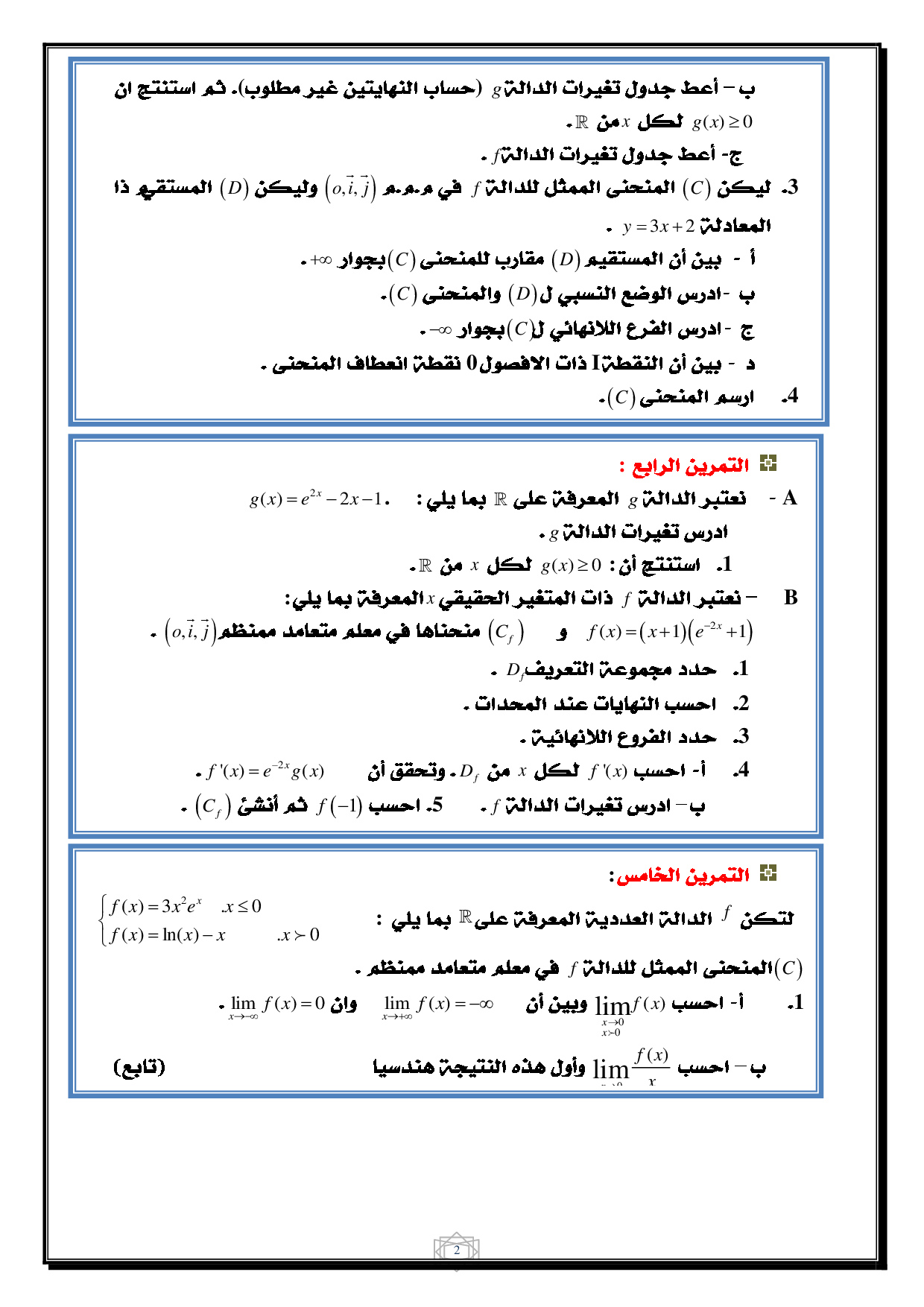 Fonctions exponentielles - Exercices non corrigés 1 (Ar)