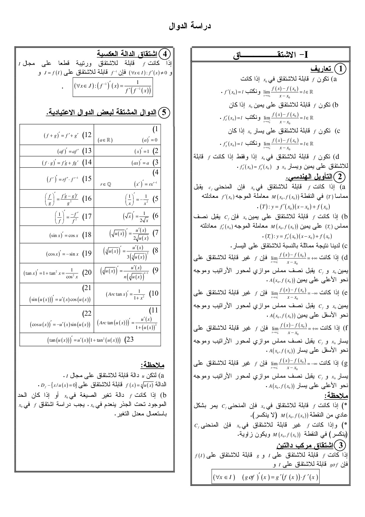 دراسة الدوال وتمثيلها المبياني - ملخص الدرس 2