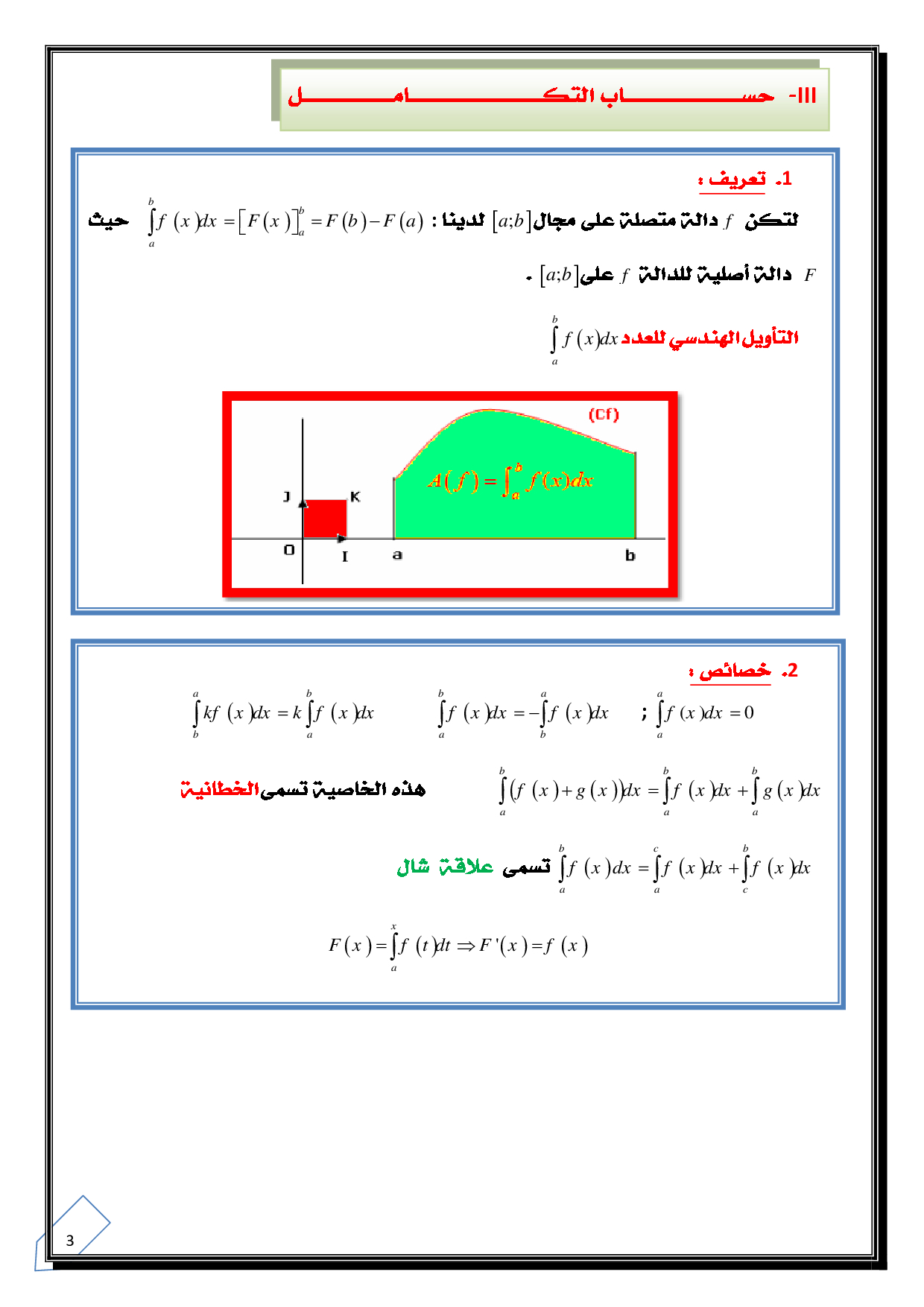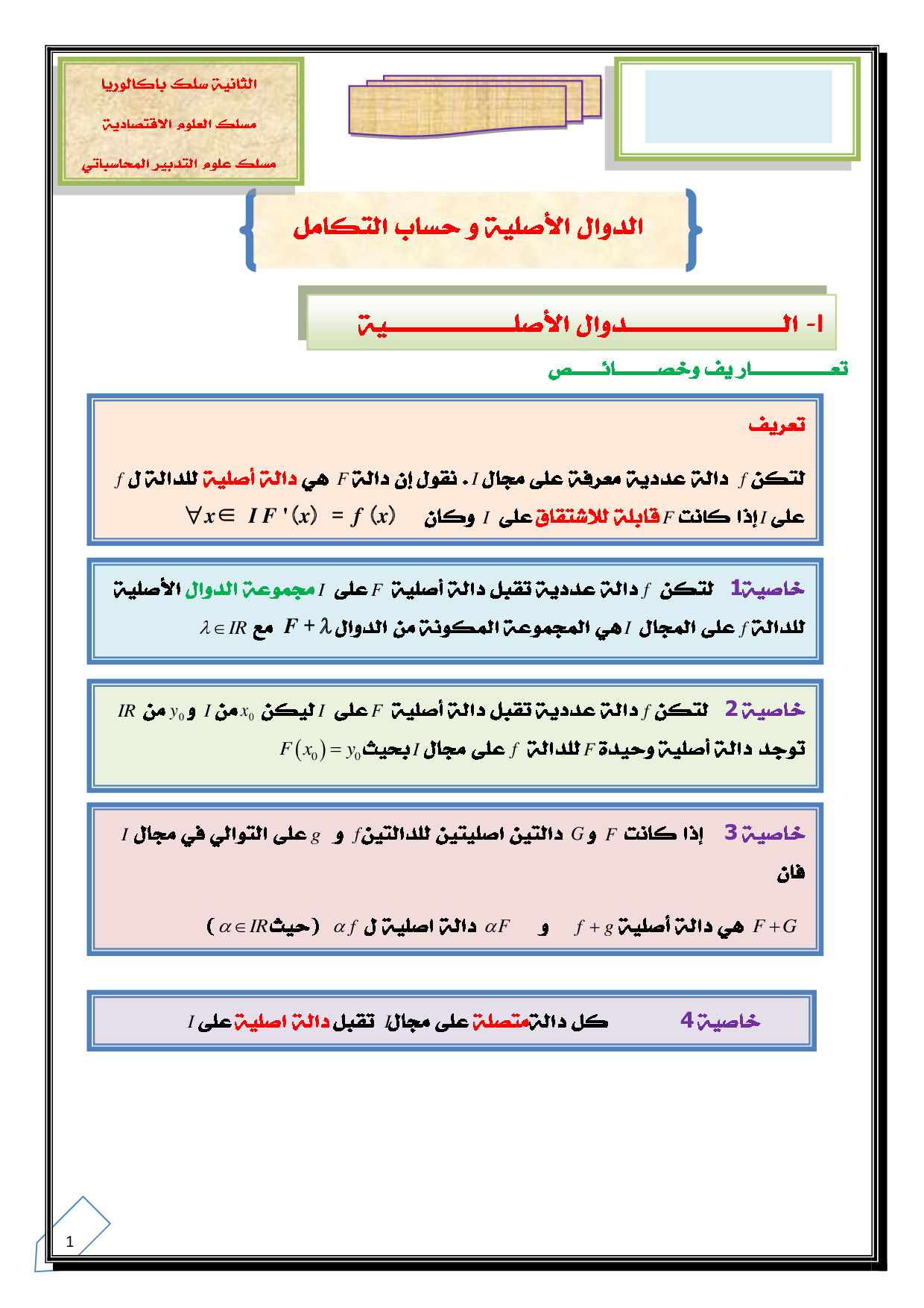Fonctions primitives et calcul intégral - Cours 1 (Ar)