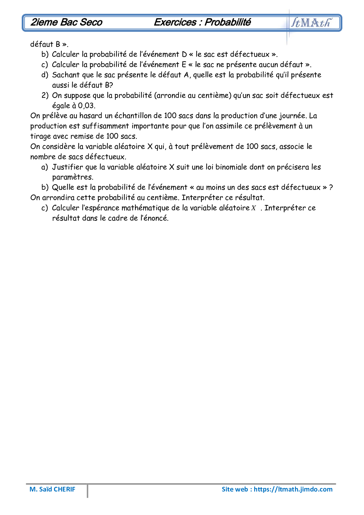 Probabilités - Exercices non corrigés 1
