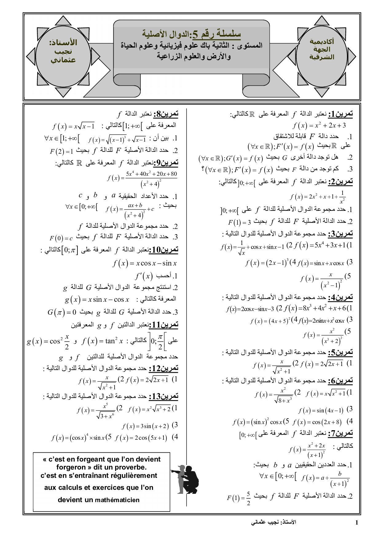 الدوال الأصلية - تمارين غير محلولة 1