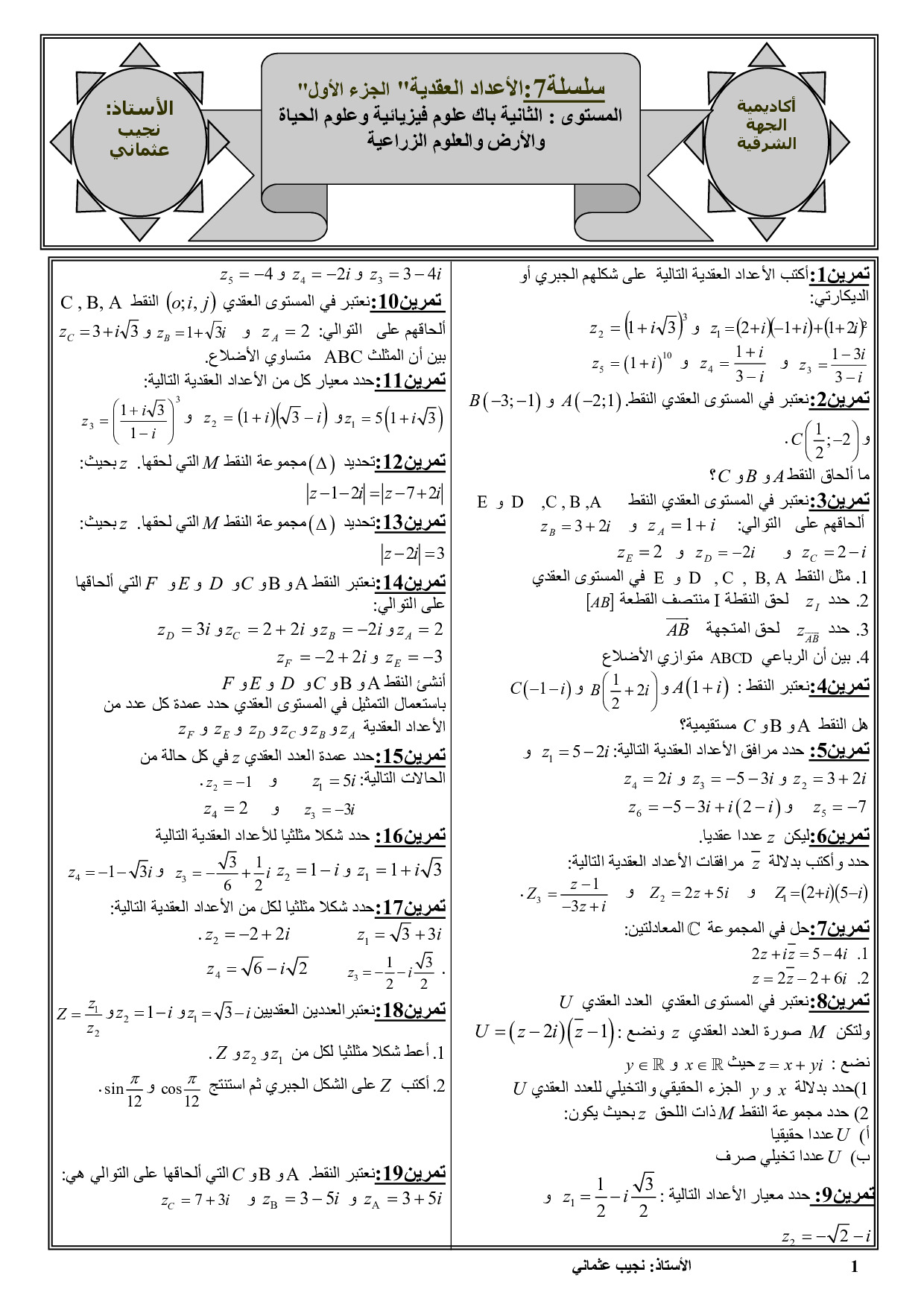 الأعداد العقدية 1 - تمارين غير محلولة 1
